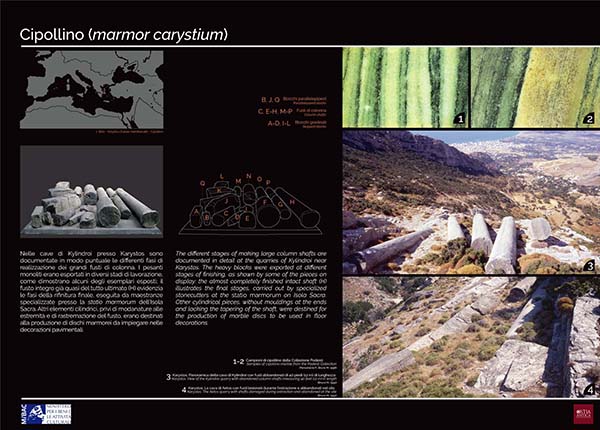 Cipollino marble was extracted along the western coast of southern Euboea. Introduced to Rome during the Augustan period (late 1st century BC - early 1st century AD), it was used for column shafts and revetment panels for the most important complexes in the city and provinces. Its use at...