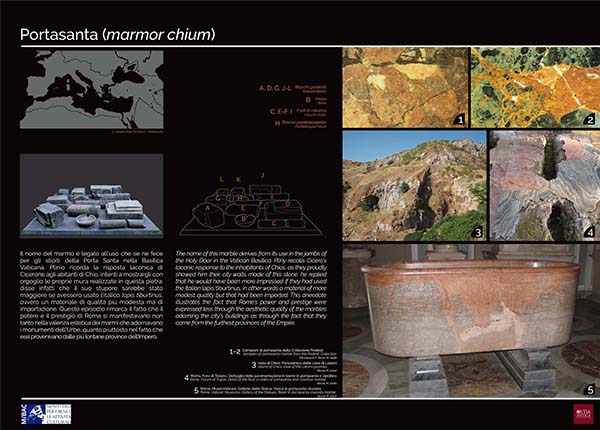 The name of this marble derives from its use in the jambs of the Holy Door in the Vatican Basilica. Pliny recalls Cicero’s laconic response to the inhabitants of Chios, as they proudly showed him their city walls made of this stone: he replied that he would have been more impressed if they...