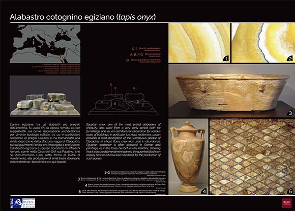 Egyptian onyx, one of the most prized alabasters of antiquity, was used from a very early period both for furnishings and as an architectural decoration for various types of buildings, in particular luxurious residences. Lucan provides a vivid description of the sumptuous palace of Cleopatra,...