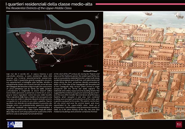 At the start of the 2nd century AD, during the Trajanic and above all the Hadrianic period, the western part of the city took on a prevalently residential function. Largemulti-storey residential complexes were built here, with apartments and shops along the front, sometimes directly connected...