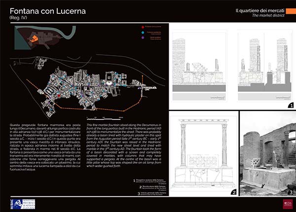 This fine marble fountain stood along the Decumanus in front of the long portico built in the Hadrianic period (AD 117-138) to monumentalize the street. There was probably already a basin lined with hydraulic plaster on this spot from the Augustan period (late 1st century BC – early 1st...