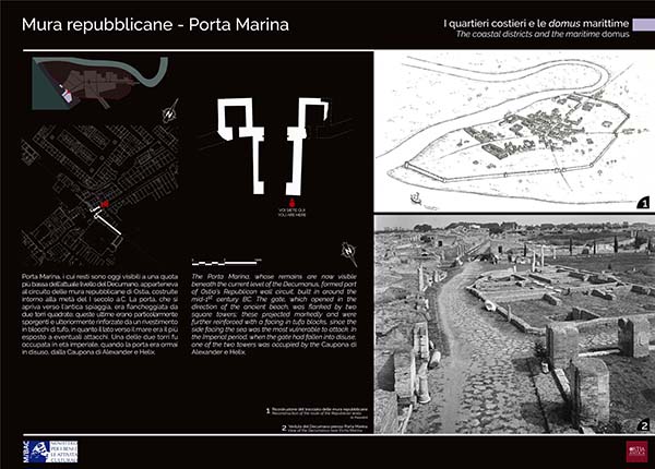 The Porta Marina, whose remains are now visible beneath the current level of the Decumanus, formed part of Ostia’s Republican wall circuit, built in around the mid-1st century BC. The gate, which opened in the direction of the ancient beach, was flanked by two square towers; these projected...