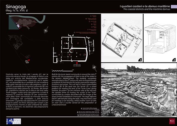 Built for the local Jewish community in around the mid-1st century AD, the synagogue of Ostia is one of the oldest in the western Mediterranean. The building, completely reconstructed in the 4th century AD, was accessed through a vestibule (A) that led into the sector reserved for religious...