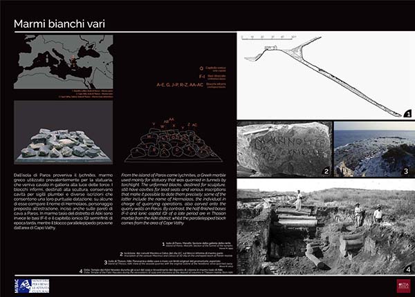 From the island of Paros came lychnites, a Greek marble used mainly for statuary that was quarried in tunnels by torchlight. The unformed blocks, destined for sculpture, still have cavities for lead seals and various inscriptions hat make it possible to date them precisely; some of the...
