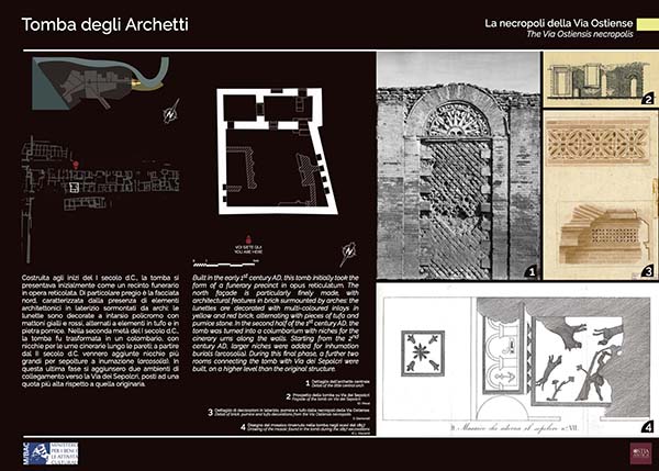 Costruita agli inizi del I secolo d.C., la tomba si presentava inizialmente come un recinto funerario in opera reticolata. Di particolare pregio è la facciata nord, caratterizzata dalla presenza di elementi architettonici in laterizio sormontati da archi: le lunette sono decorate a intarsio...