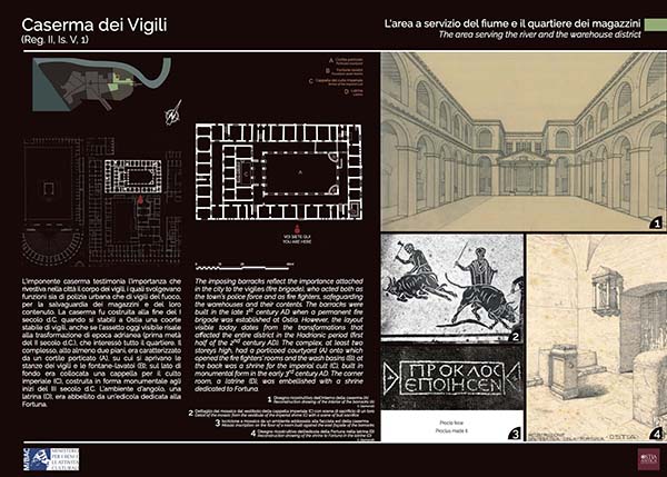 L’imponente caserma testimonia l’importanza che rivestiva nella città il corpo dei vigili, i quali svolgevano funzioni sia di polizia urbana che di vigili del fuoco, per la salvaguardia dei magazzini e del loro contenuto. La caserma fu costruita alla fine del I secolo d.C. quando si...