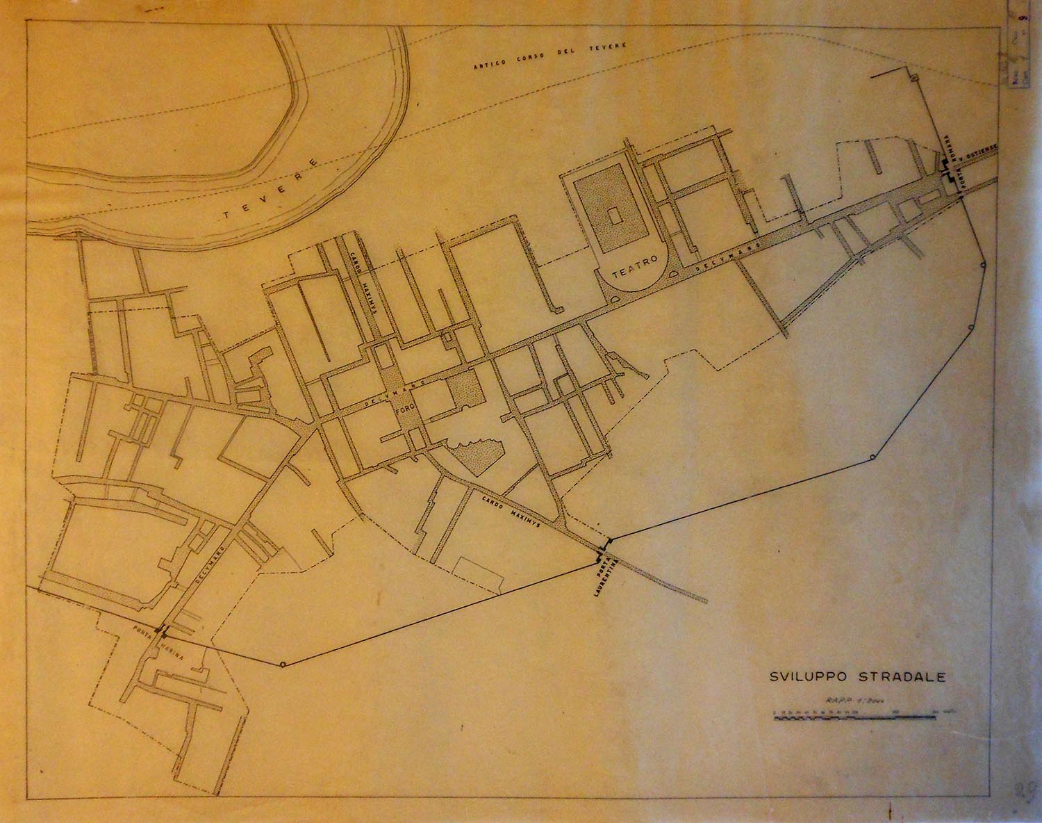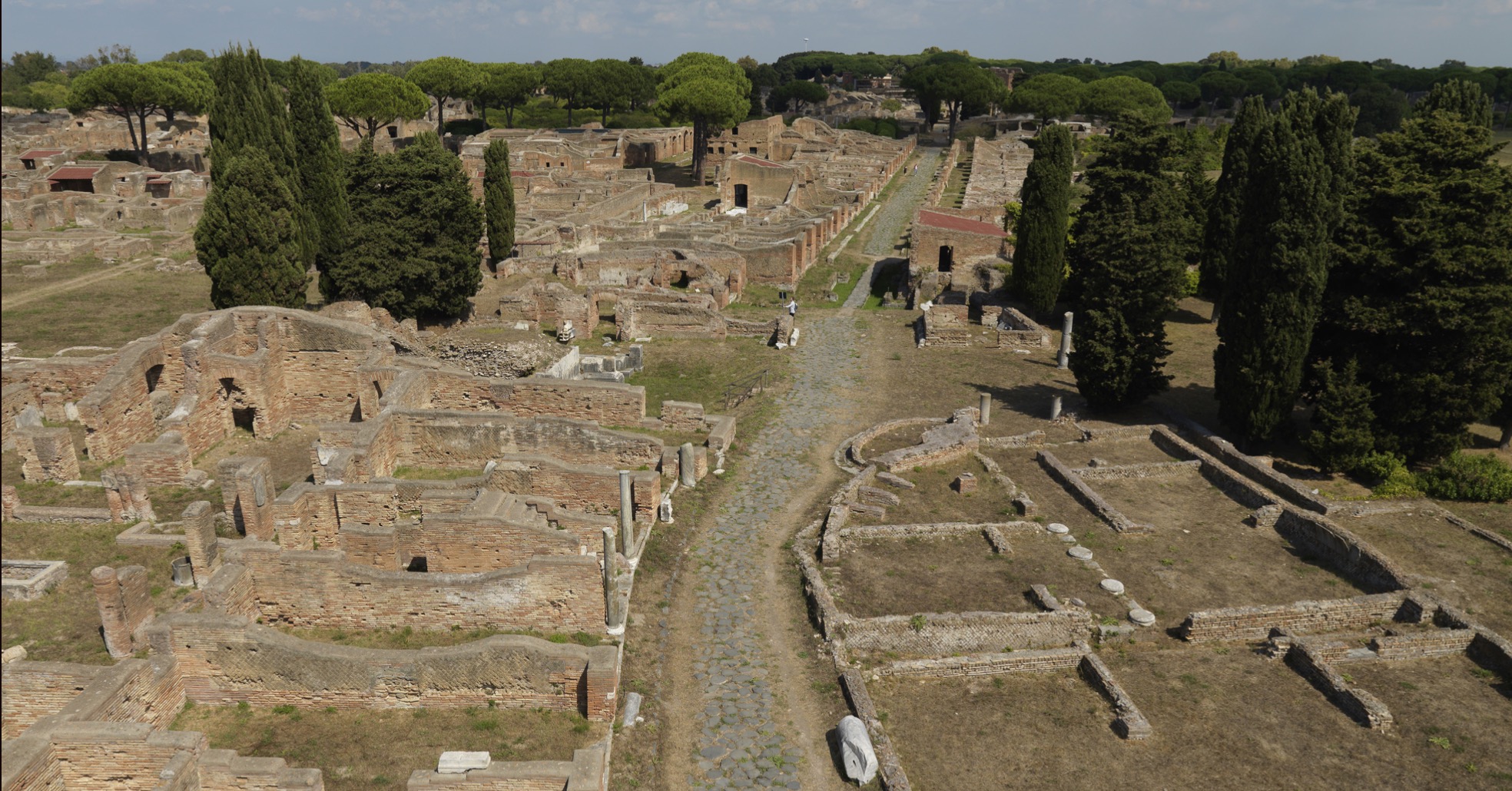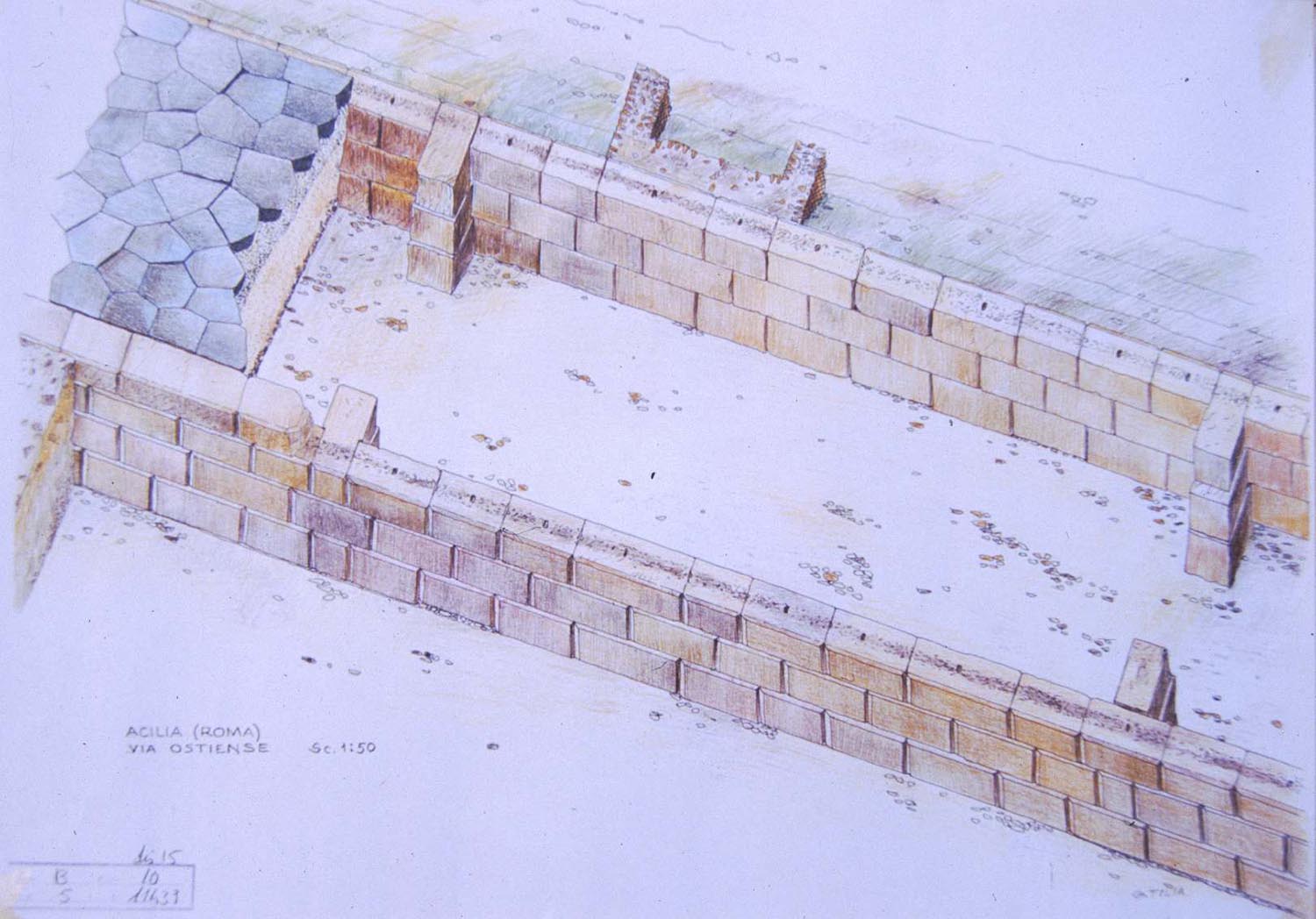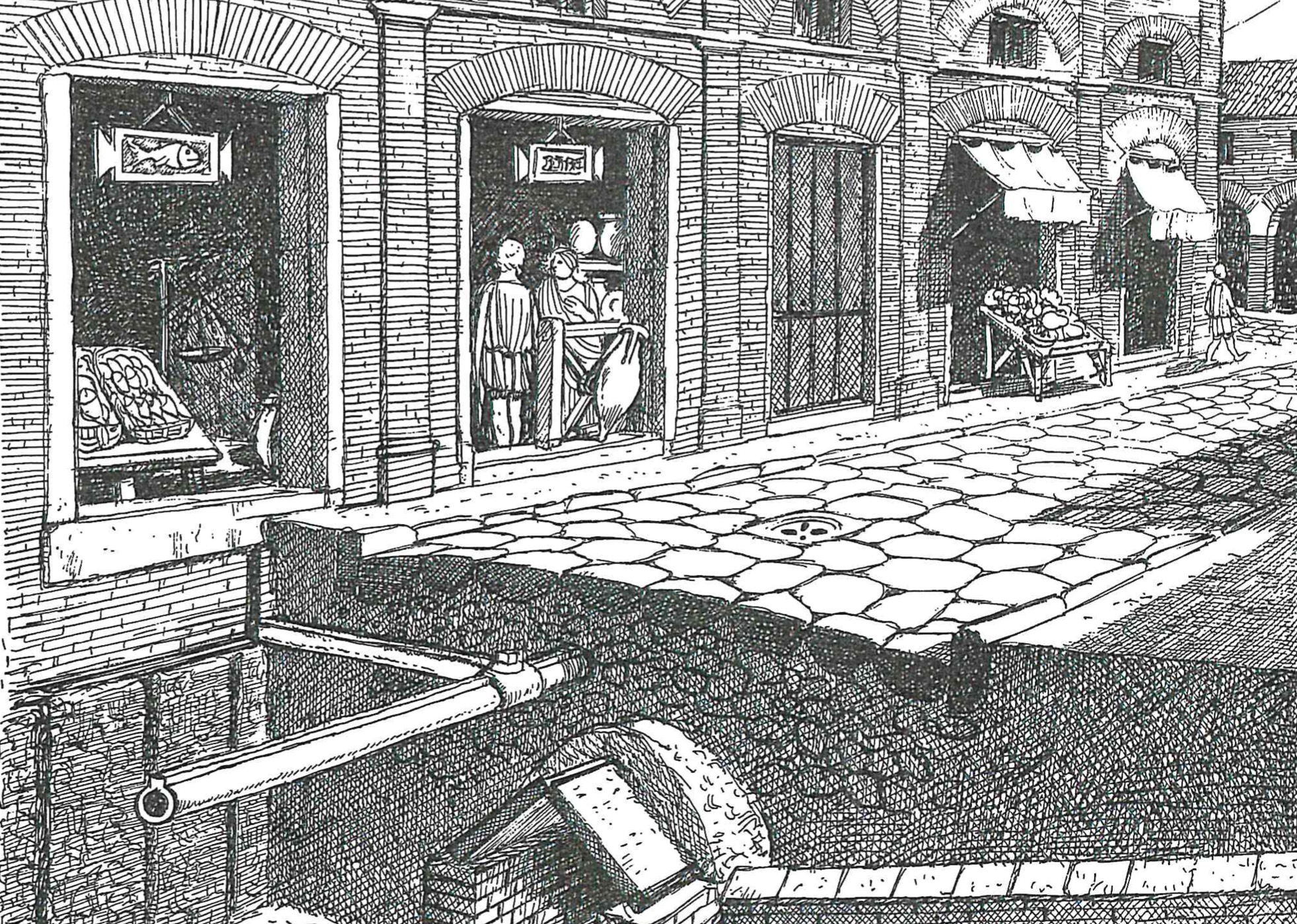 The city’s main streets were the Decumanus and the Cardo, which crossed each other at the Forum. The former was the stretch of the Via Ostiensis inside the city, running east-west and turning slightly towards the south in the direction of the sea. The southern stretch of the Cardo followed the course of the more ancient Via Laurentina inside the city; the northern stretch, built from scratch, reached the banks of the Tiber. Other streets also ran towards the river, like Via della Foce and the Semita (or path) dei Cippi, important for commercial purposes. Many of the city’s major streets were built over more ancient routes, thus explaining the irregular orientation of the various districts. There was also a dense network of smaller lanes.