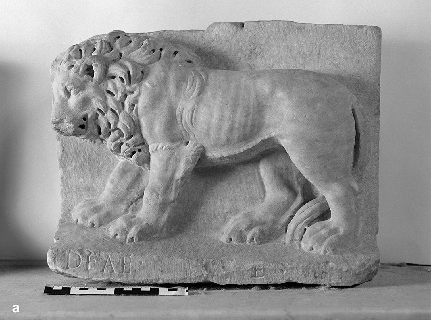 Relief depicting a lion, belonging to the sculpture group dedicated by C. Cartilius Euplus in the sanctuary of Attis (Museo Ostiense)