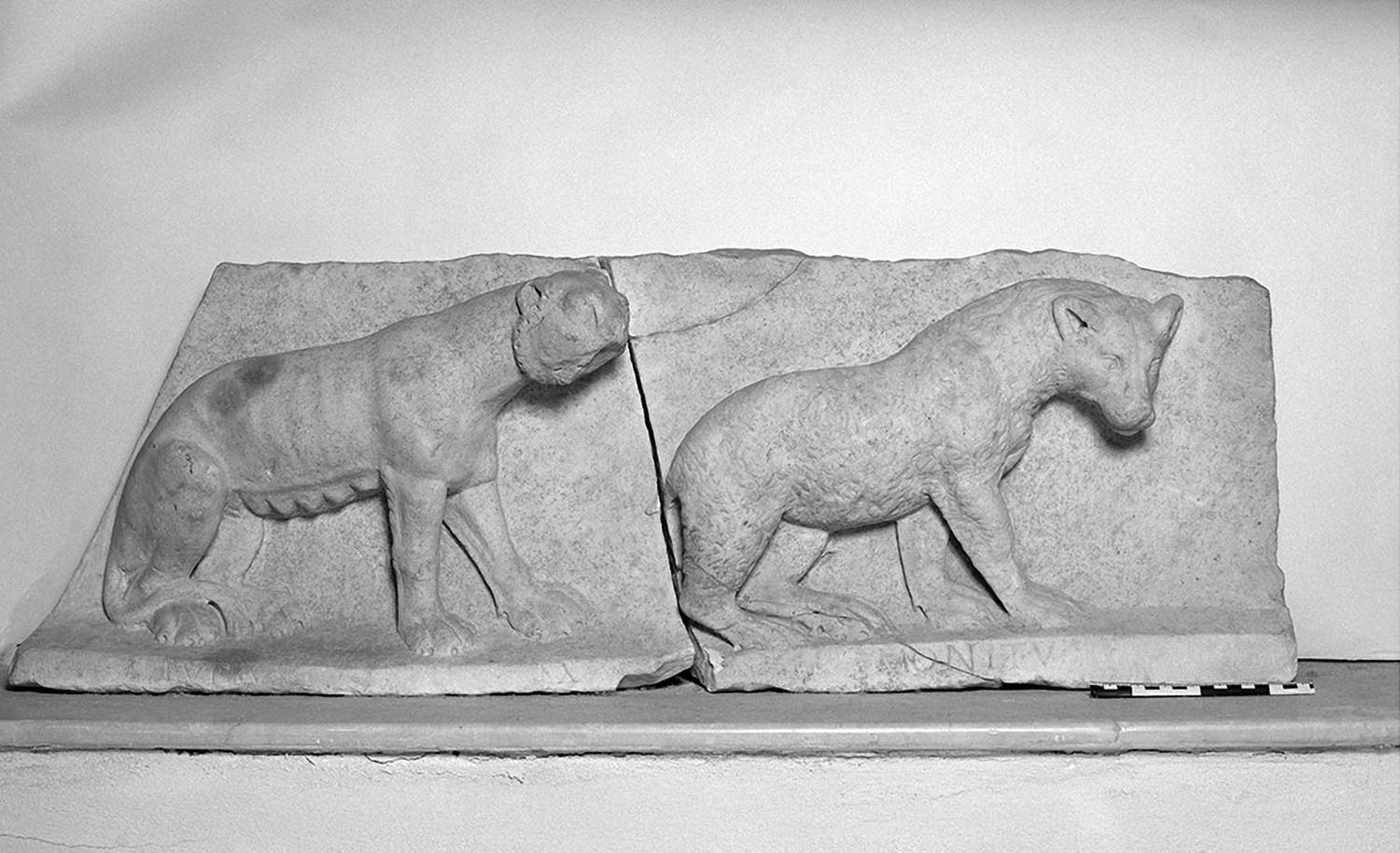 Relief depicting a panther and bear, belonging to the sculpture group dedicated by C. Cartilius Euplus in the sanctuary of Attis (Museo Ostiense)