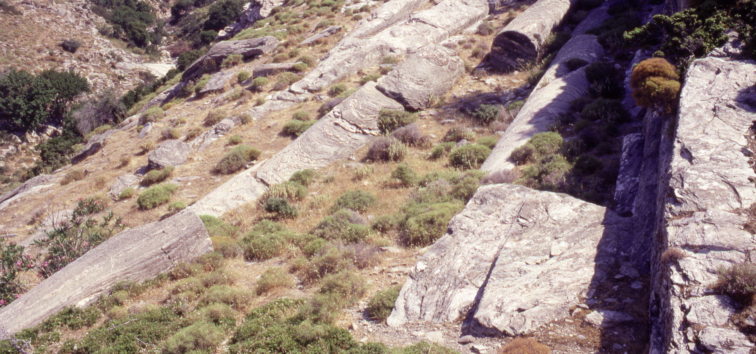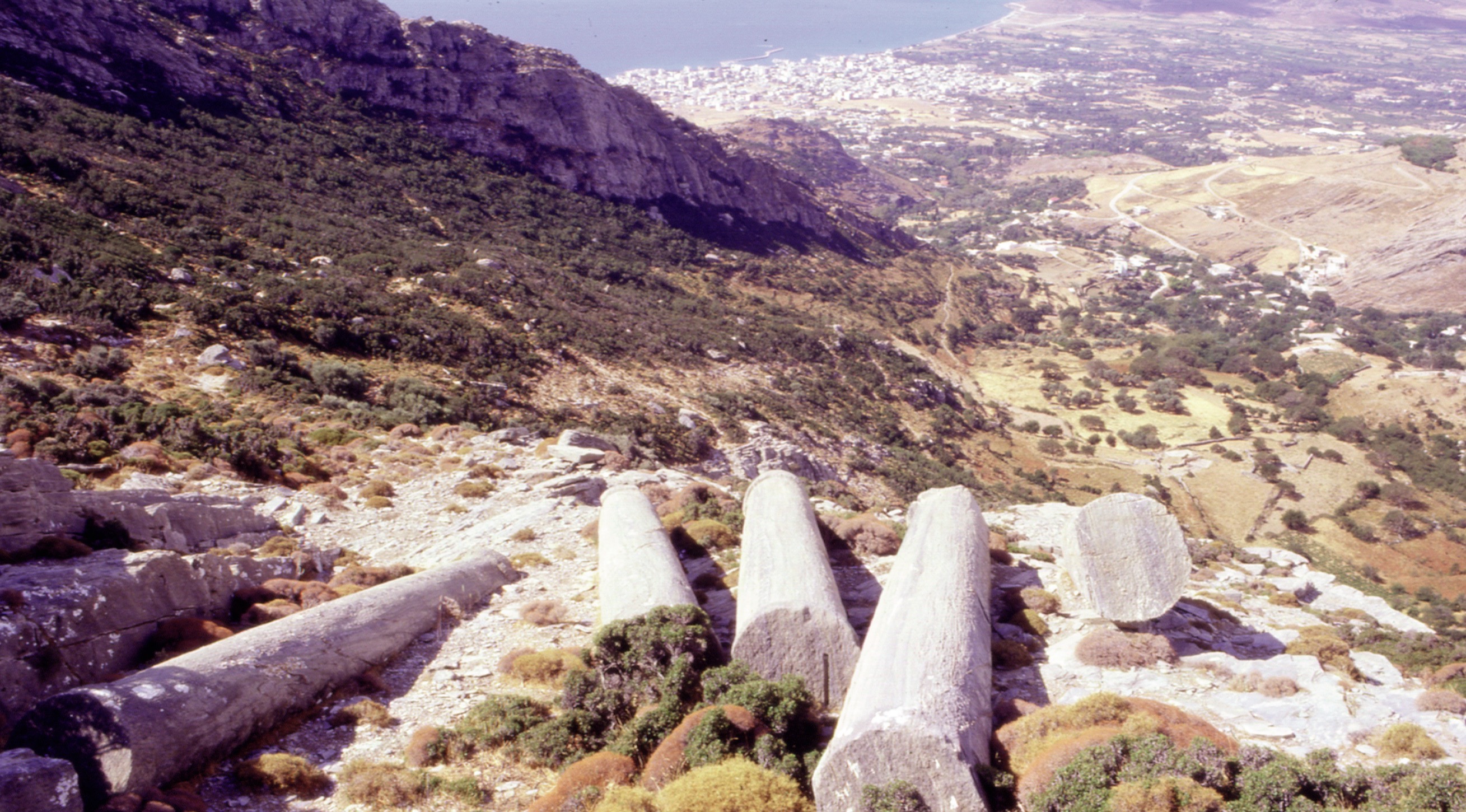 Karystos. View of the Kylindroi quarry with abandoned column shafts measuring 40 feet (12 m) in length