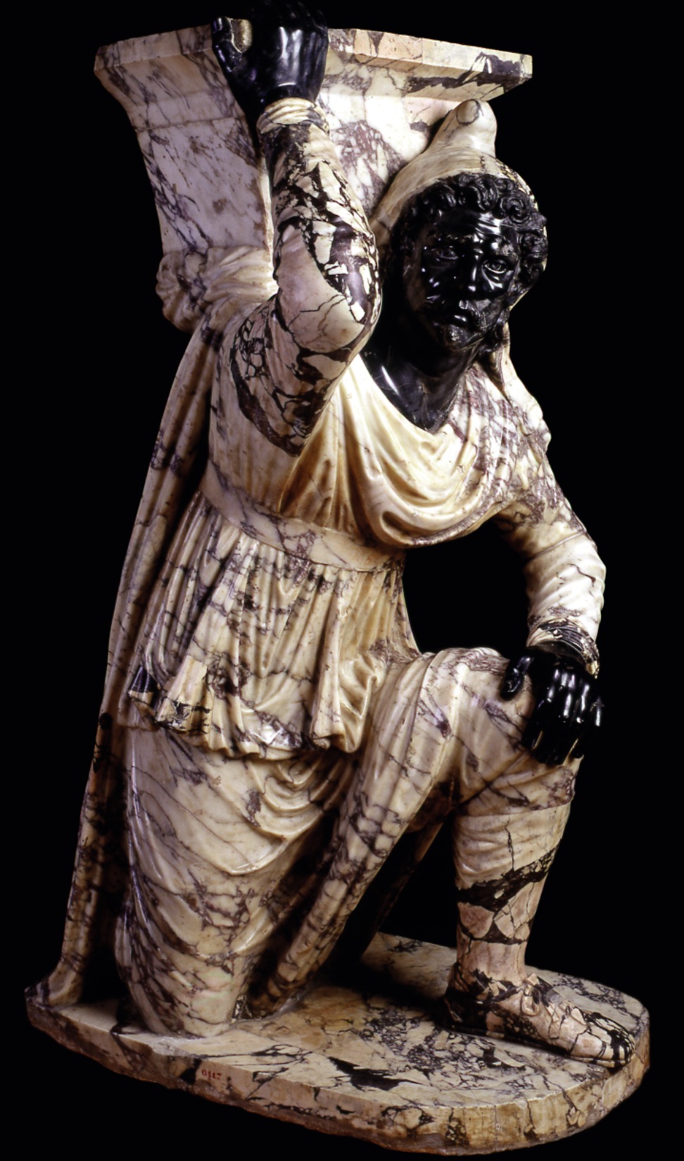 Naples, Archaeological Museum. Kneeling barbarian in pavonazzetto marble from the Farnese Collection