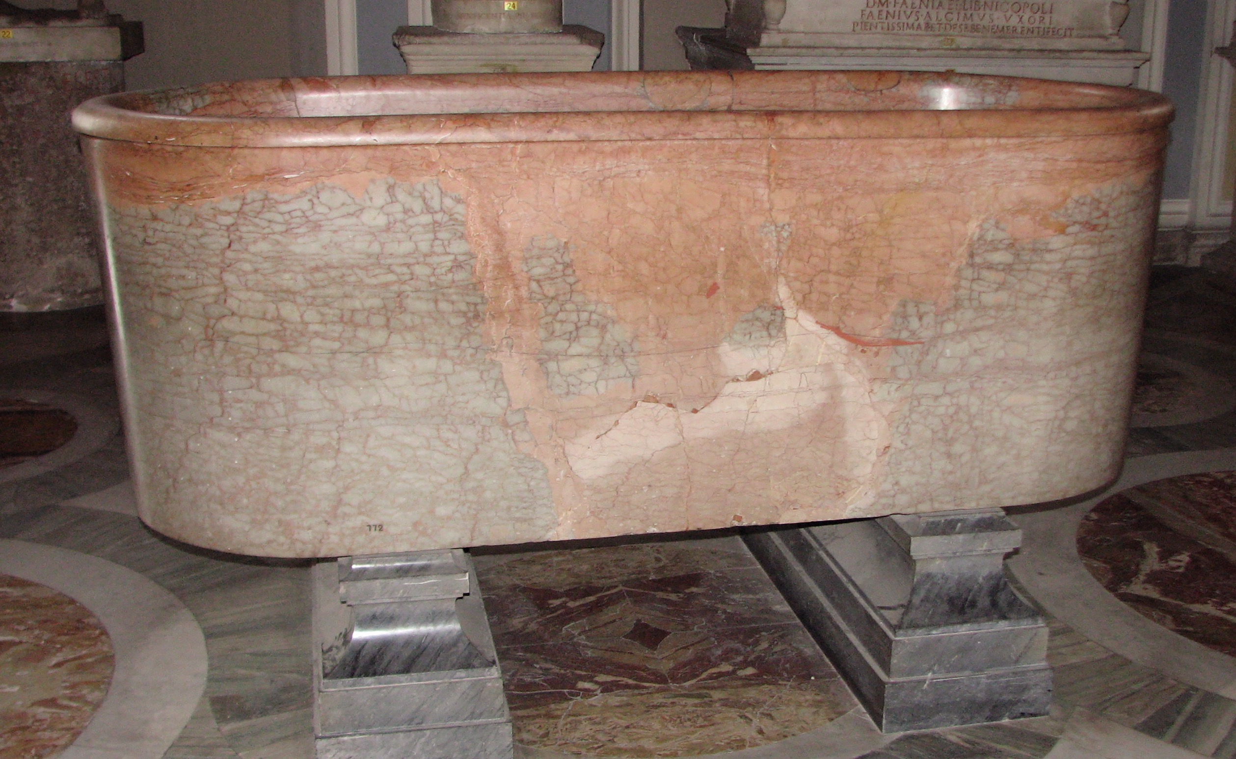 The name of this marble derives from its use in the jambs of the Holy Door in the Vatican Basilica. Pliny recalls Cicero’s laconic response to the inhabitants of Chios, as they proudly showed him their city walls made of this stone: he replied that he would have been more impressed if they had used the Italian lapis tiburtinus, in other words a material of more modest quality but that had been imported. This anecdote illustrates the fact that Rome’s power and prestige were expressed less through the aesthetic quality of the marbles adorning the city’s buildings as through the fact that they came from the furthest provinces of the Empire.