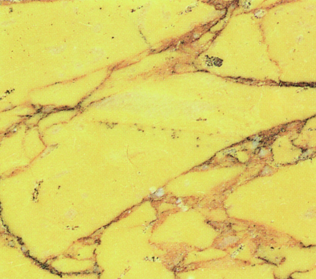 Samples of giallo antico marble, alabastro a pecorella and alabastro listato or fiorito from the Podesti Collection