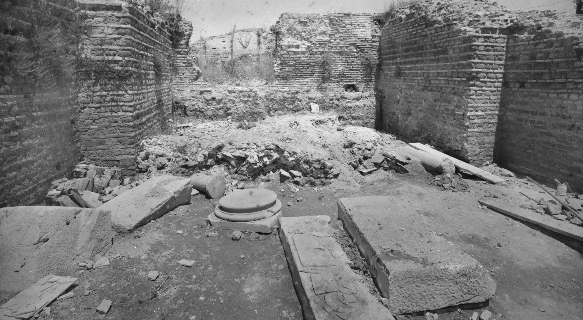 Ostia. Discovery of the blocks of giallo antico marble during the excavation of the building of the opus sectile outside Porta Marina in 1959