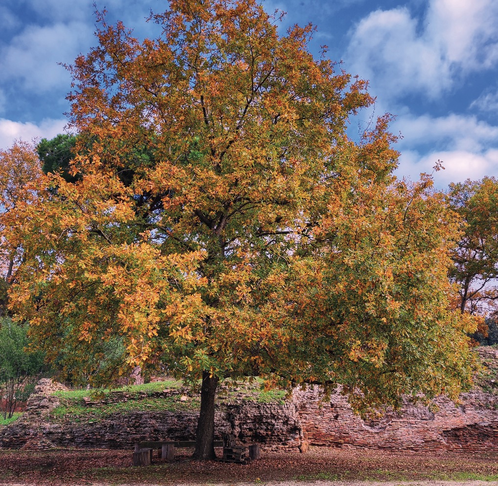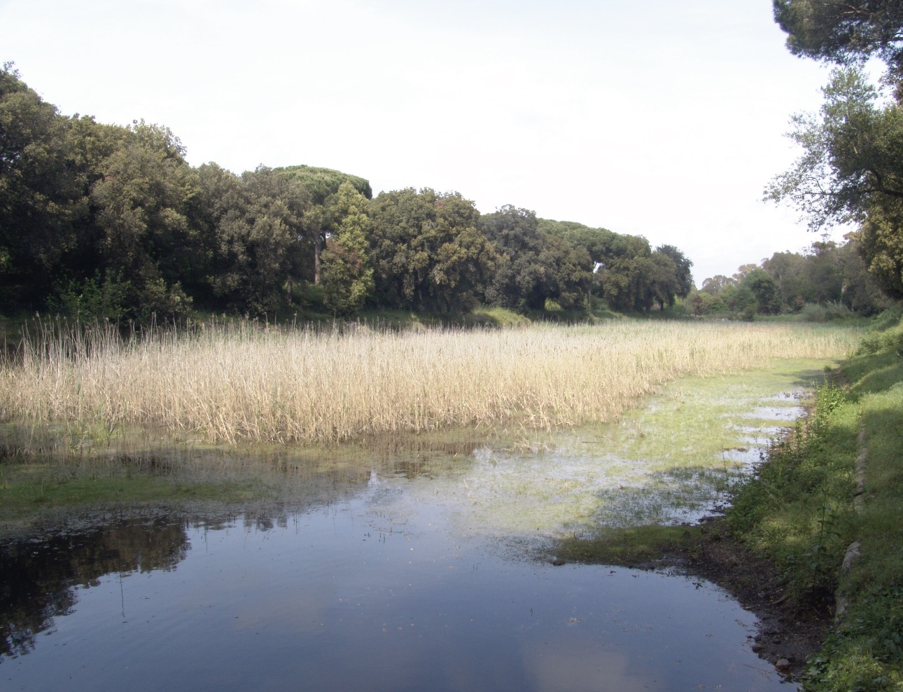 Starting in the 1920s, Prince Giovanni Torlonia had a strong influence over the site’s plant life. In addition to the pine trees still present today, subsequent years saw the planting of numerous fruit trees especially in the lands around the farmstead, now no longer to be seen; the only aesthetic and geometric lines that can currently be recognized are those of the row of Platanus hybrida leading to the Imperial Palace, of the Cupressus sempervirens in the area of the farmstead, and of the Pinus pinea and Quercus ilex stretching along the quay of Trajan’s warehouses and around the wet dock. The most recent planting is the row of Eucalyptus globulus along the fence at the entrance to the archaeological area. Spontaneous vegetation is concentrated above all along the drainage channels of Lago di Traiano and in the wet dock: here, the wetland plants, which provide nesting for migrating birds, alternate with laurel, viburnum, and buckthorn.