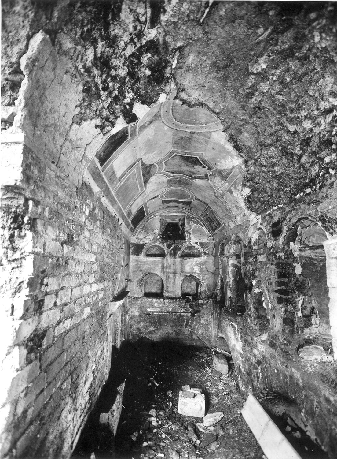 Historical photograph of the painted vault in tomb N in the northern sector of the Necropolis, “former O.N.C tombs” nucleus (1939), now at Depositi Ostiensi
