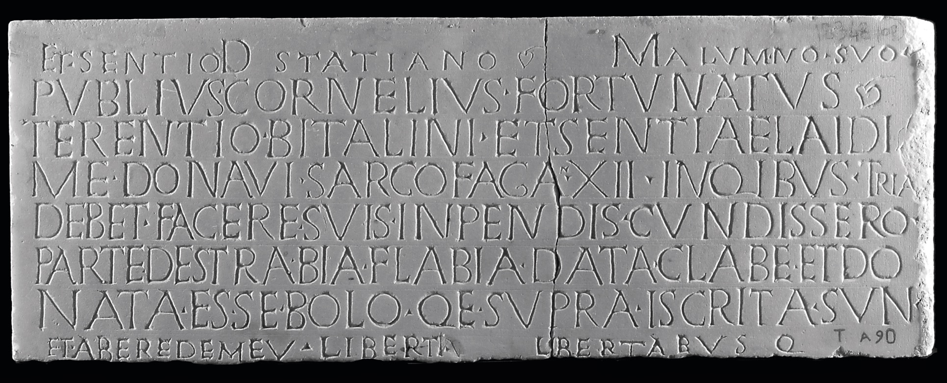 Inscription originally placed on the façade of Tomb 16, mentioning the “bia Flabia”