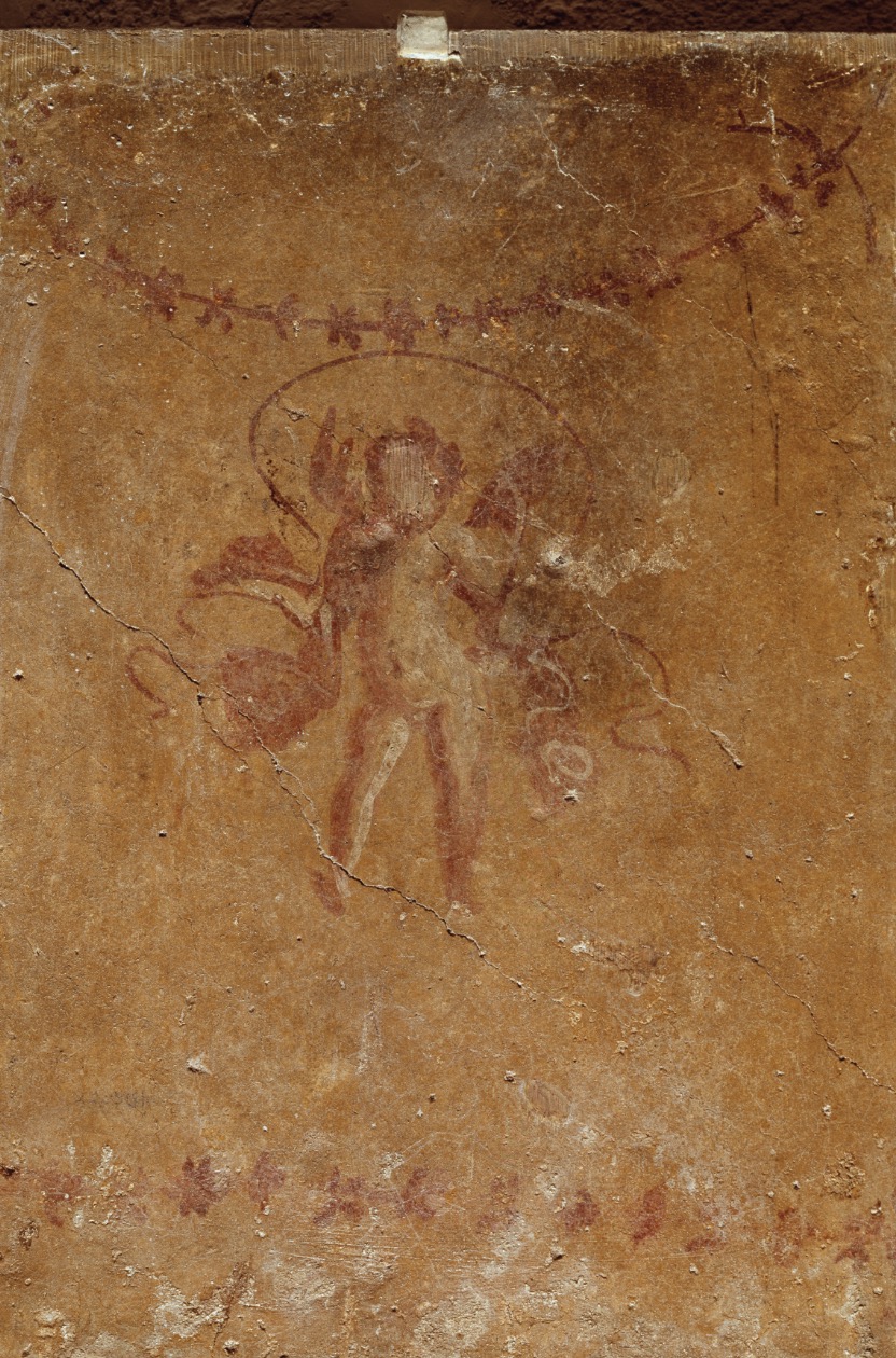 Tombs 57 and 58: cella-type tombs, the façades show a smaller diverticulum. The painted decoration of the first one was also done on the building’s exterior, while in the second one an arcosolium conserves the mosaic decoration. Dating: mid-2nd century AD.