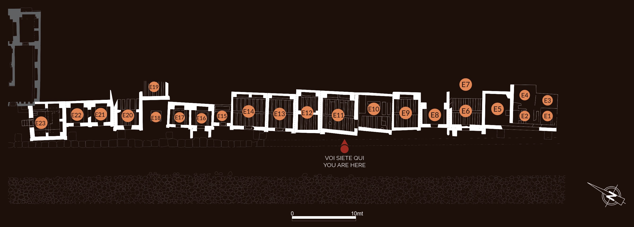 Of this group of Severan Age (197-235 AD) tomb buildings, only the sub-floor levels, occupied by formae on a number of levels, are conserved.