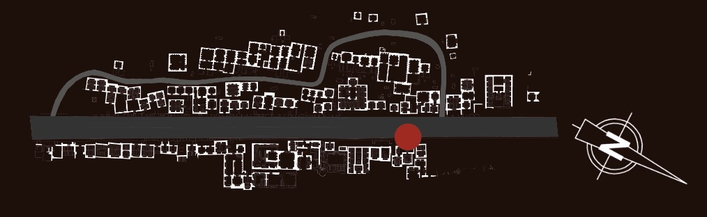 E49 enclosure and E50 cella: this complex, placed on a second front with respect to the road, is the only one in this sector with a northward-facing entrance; the orientation is most likely conditioned by the presence of a road diverticulum within the burial ground. The enclosure is intended for the mixed ritua