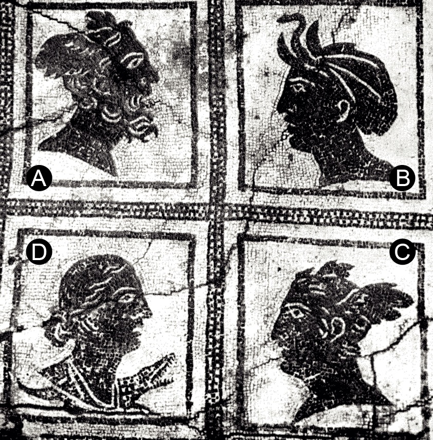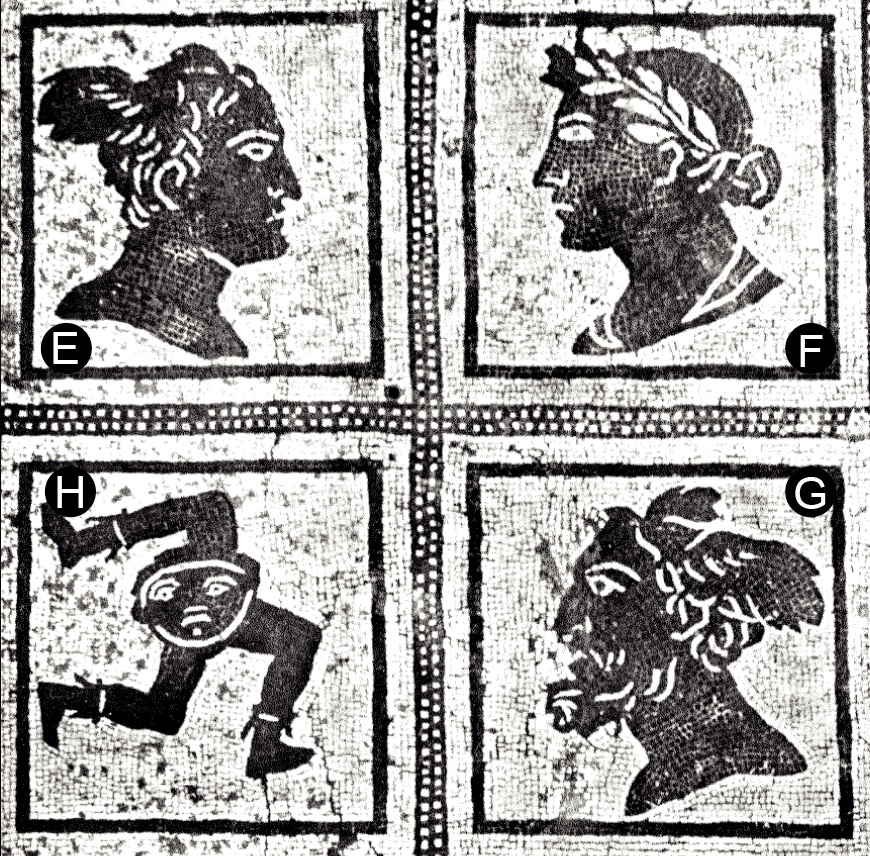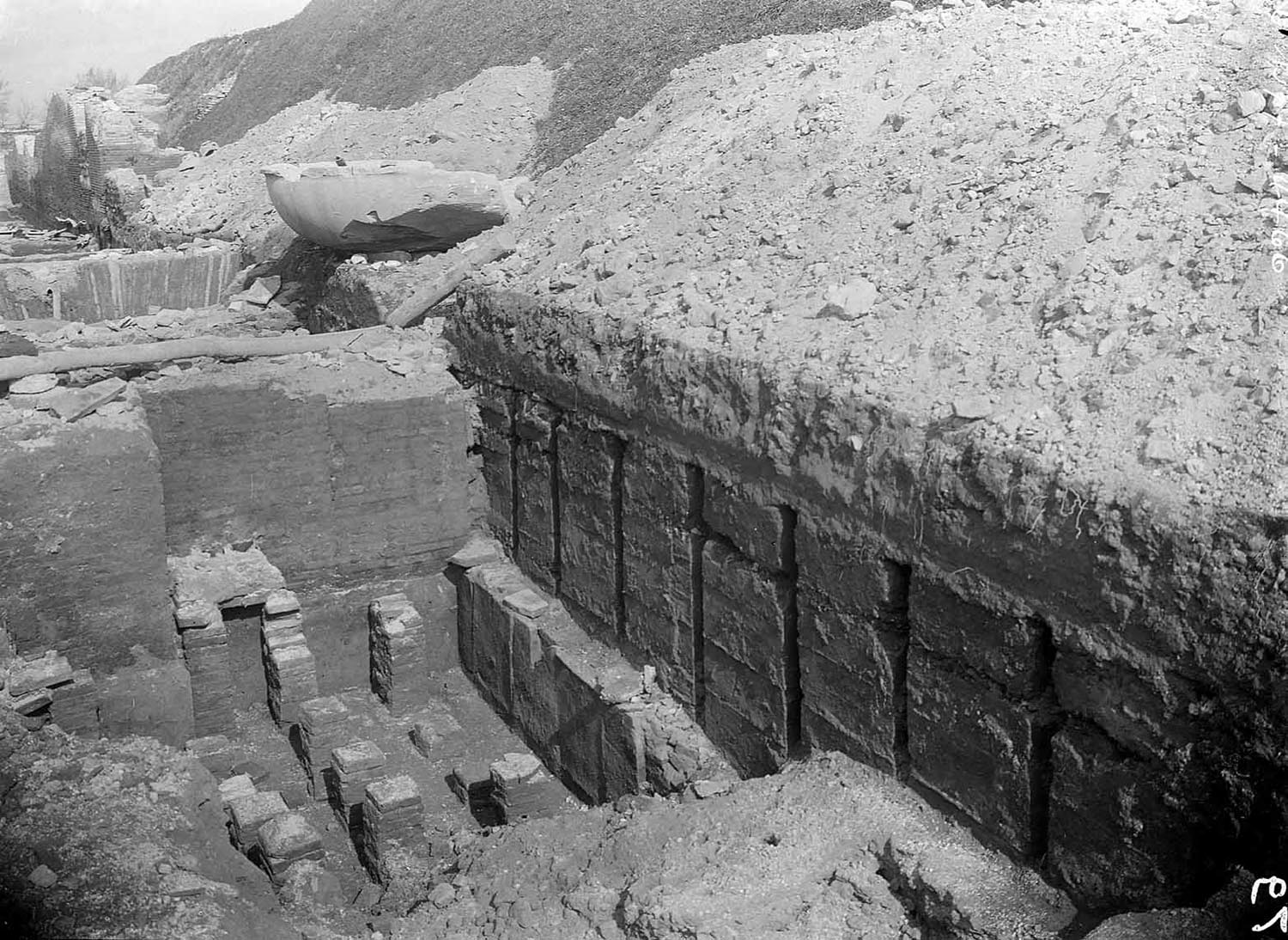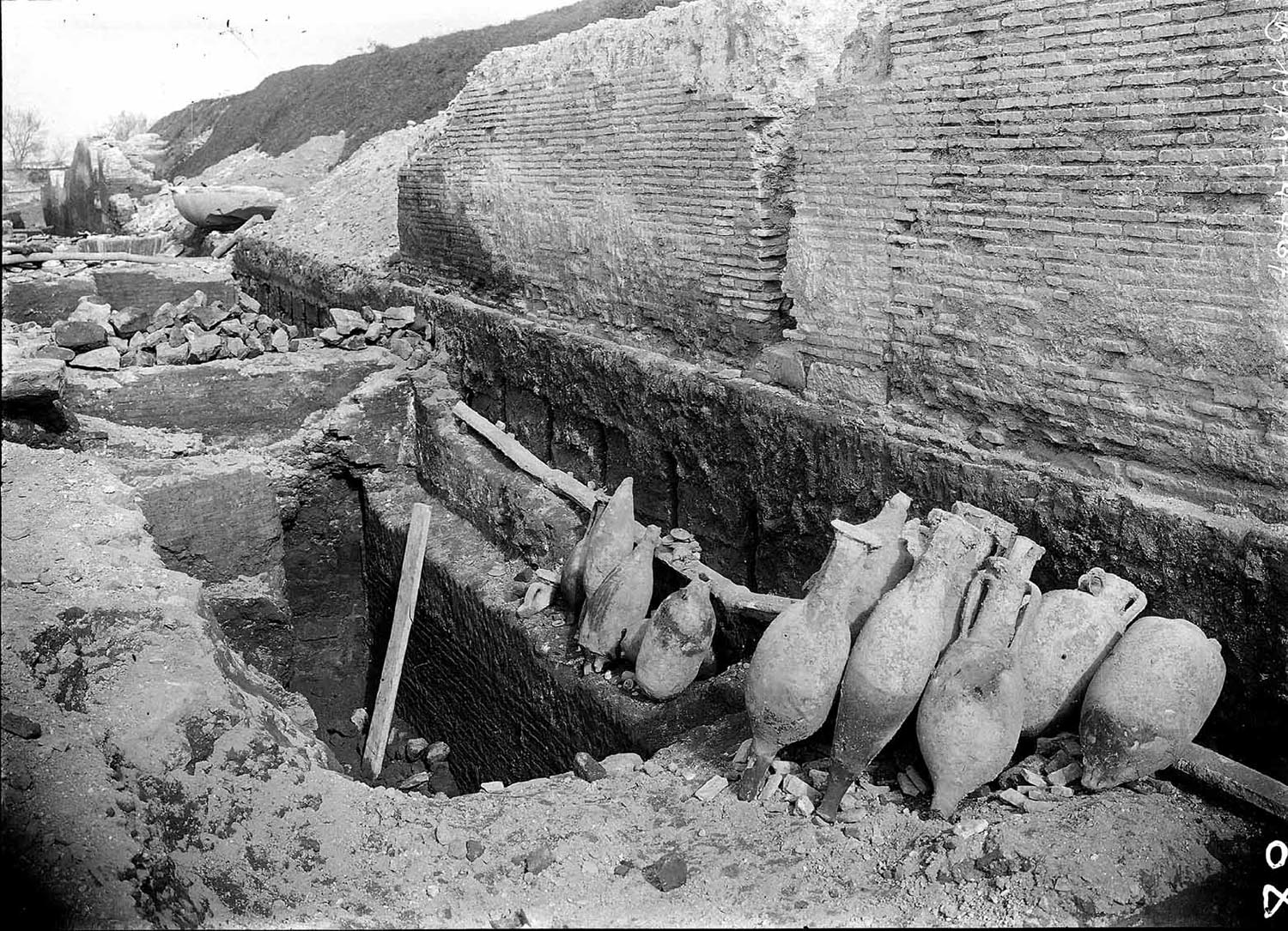 Archaeological soundings beneath the road, dating to the early 2nd century AD, brought to light a bath complex of the period of Claudius (AD 41-54) whose size is impossible to determine. The only portion still visible is a fine black and white mosaic presenting panels with depictions of weapons and geometrical motifs enclosed within a meander border. The central area is adorned with a panel containing depictions of dolphins, flanked by the personifications of the Provinces (Spain, Sicily, Egypt and Africa) and of the winds, symbolized respectively by women’s heads and men’s heads. The figurative motifs probably allude to the development of maritime trade between the provinces of the western Mediterranean and Rome following the construction of the port of Claudius.