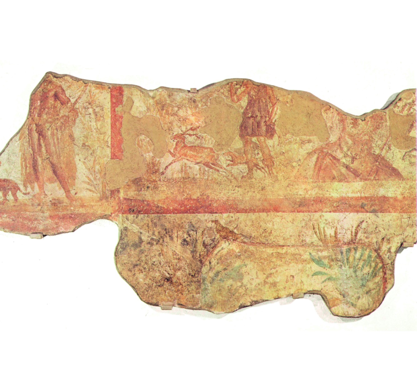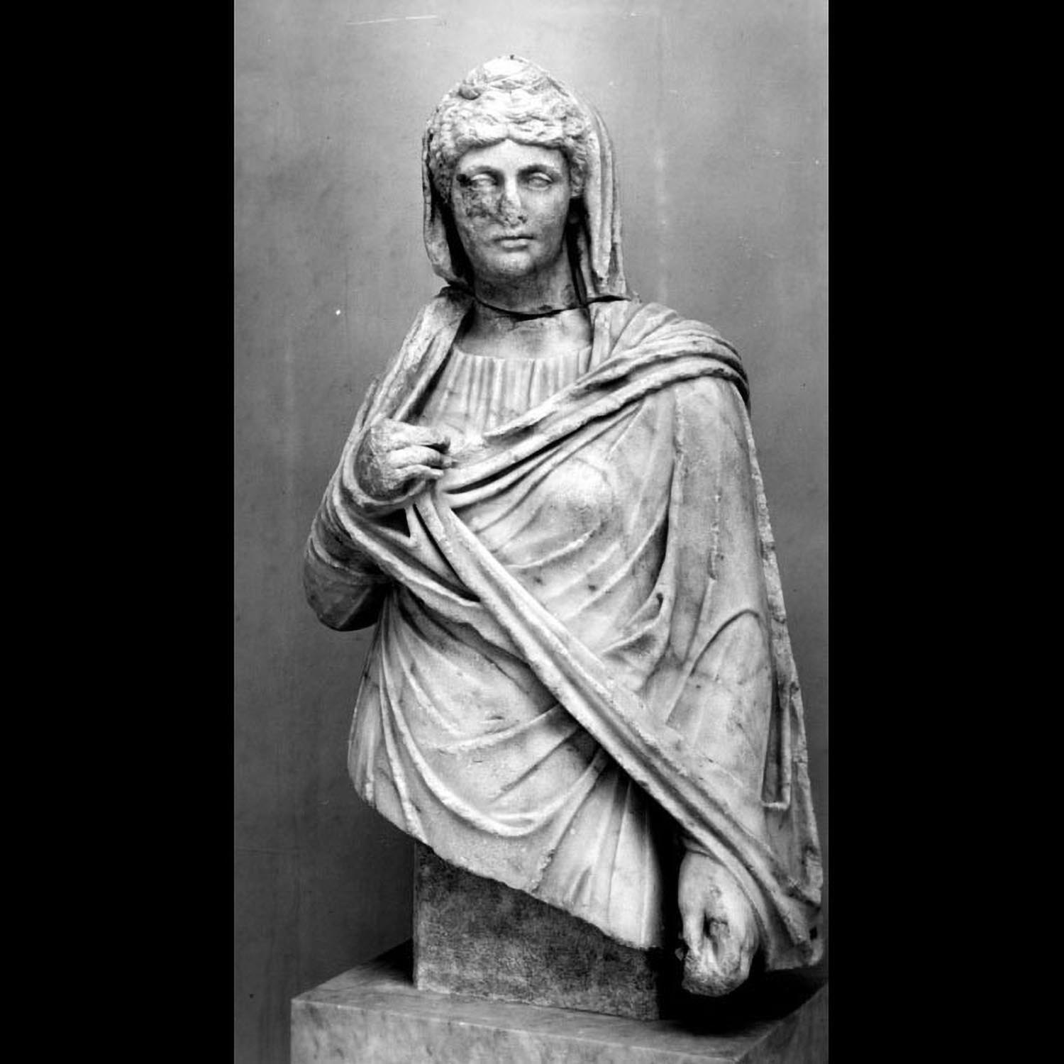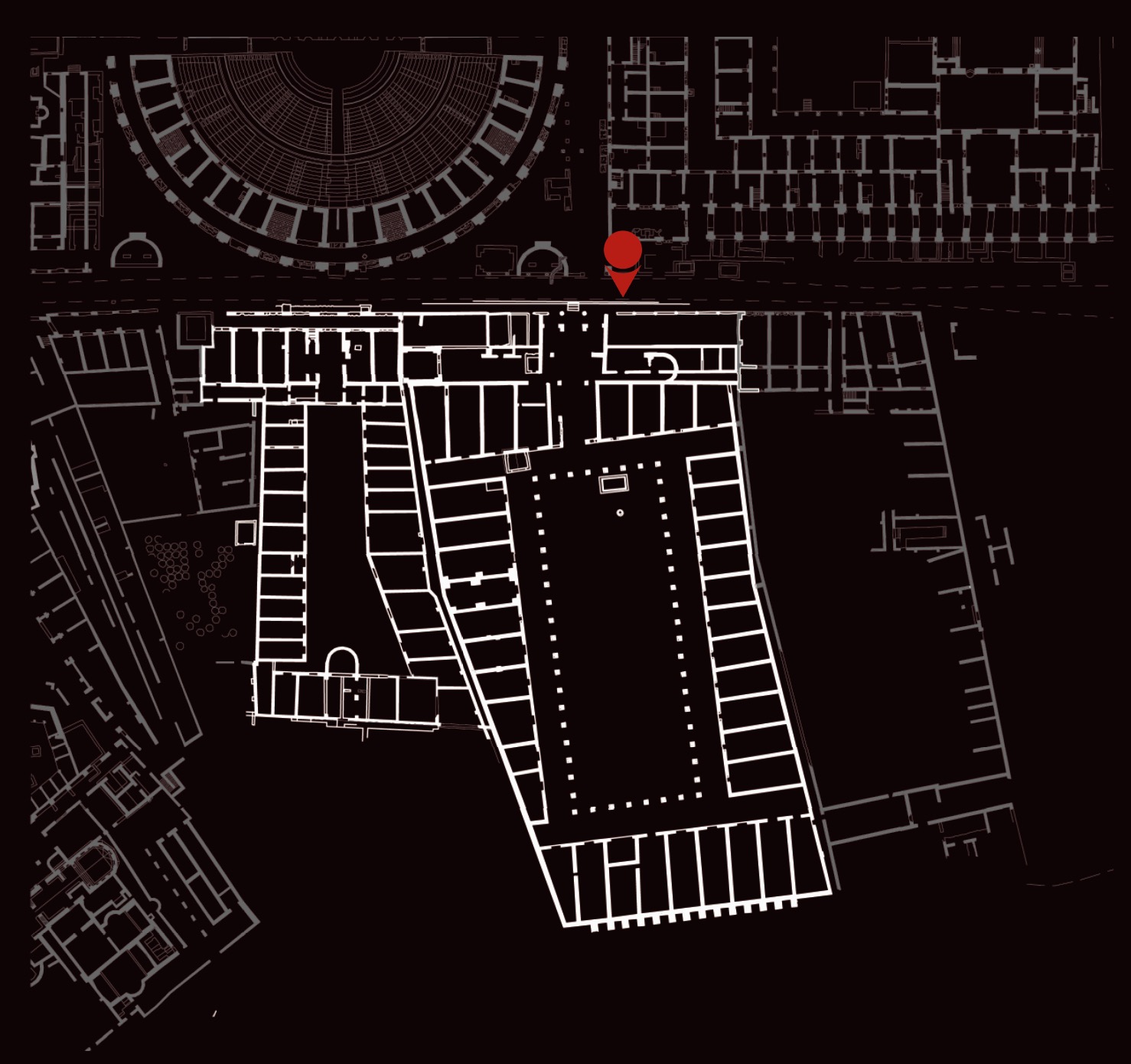 The Horrea (warehouses) of Hortensius (A), perhaps built in the late Republican period (1st century BC), are one of the most ancient examples of such buildings in Ostia and maintained their original level over time. They have a large internal courtyard, surrounded by tufa columns, onto which open the cellae (rooms for storing goods) in opus reticulatum. Between two cellae was a small temple (B) built by Lucius Hortensius, the captain of the fleet at Misenum, who is named on the mosaic floor. The nearby Horrea of Artemis (C), so-called after the discovery of a painting representing the goddess and built in the Trajanic period (AD 98-117), also have an internal courtyard; they were installed over an earlier building of commercial nature, telling us that the area was used predominantly for the storage of goods already in the 1st century BC.
