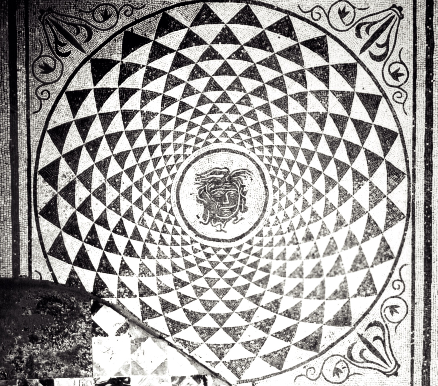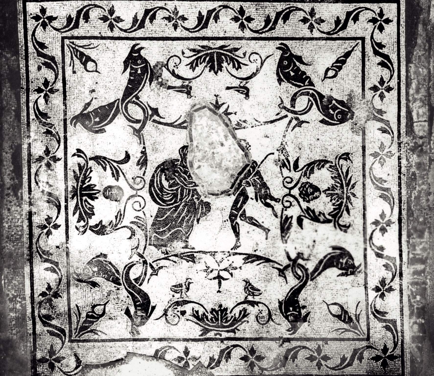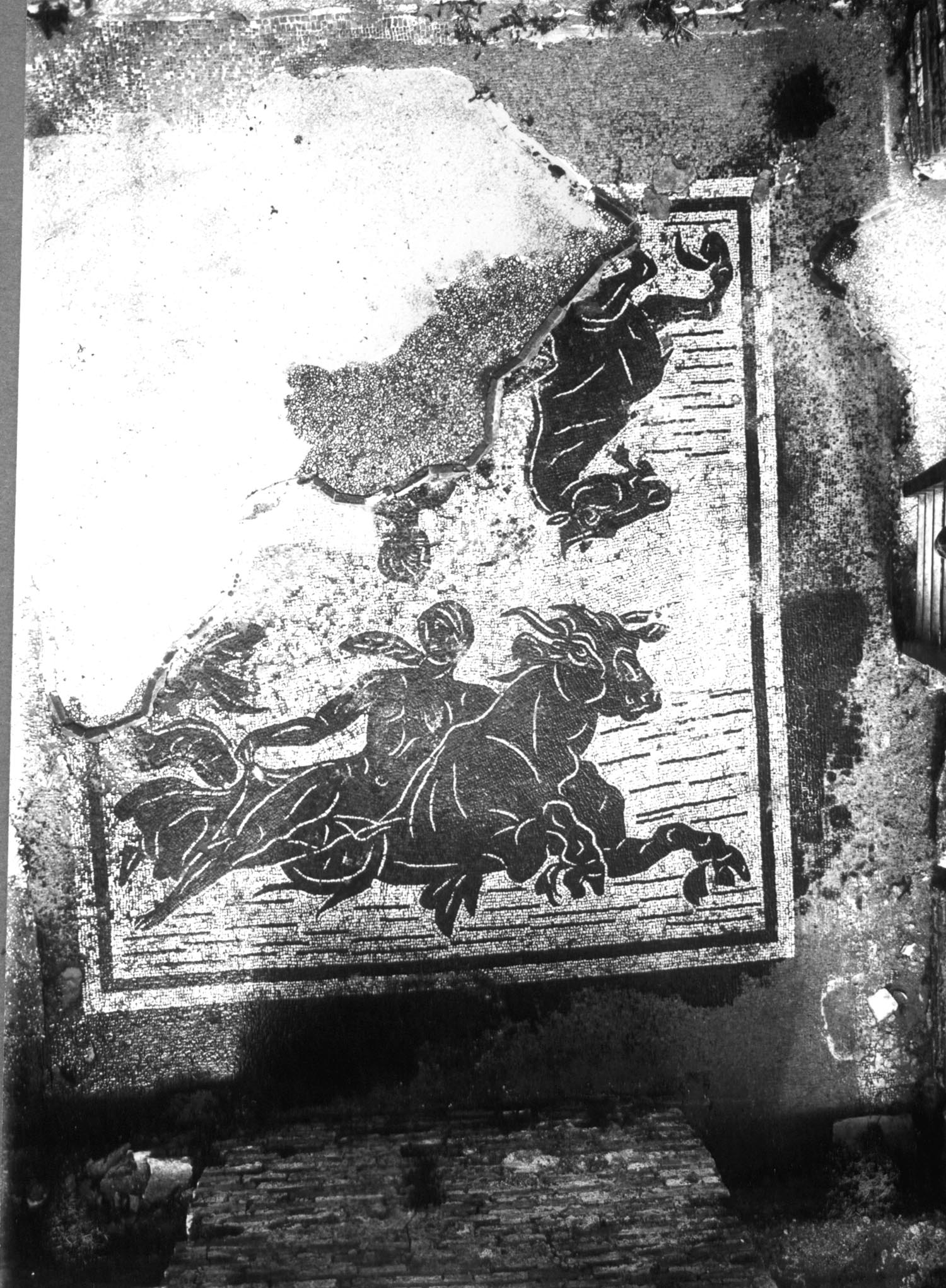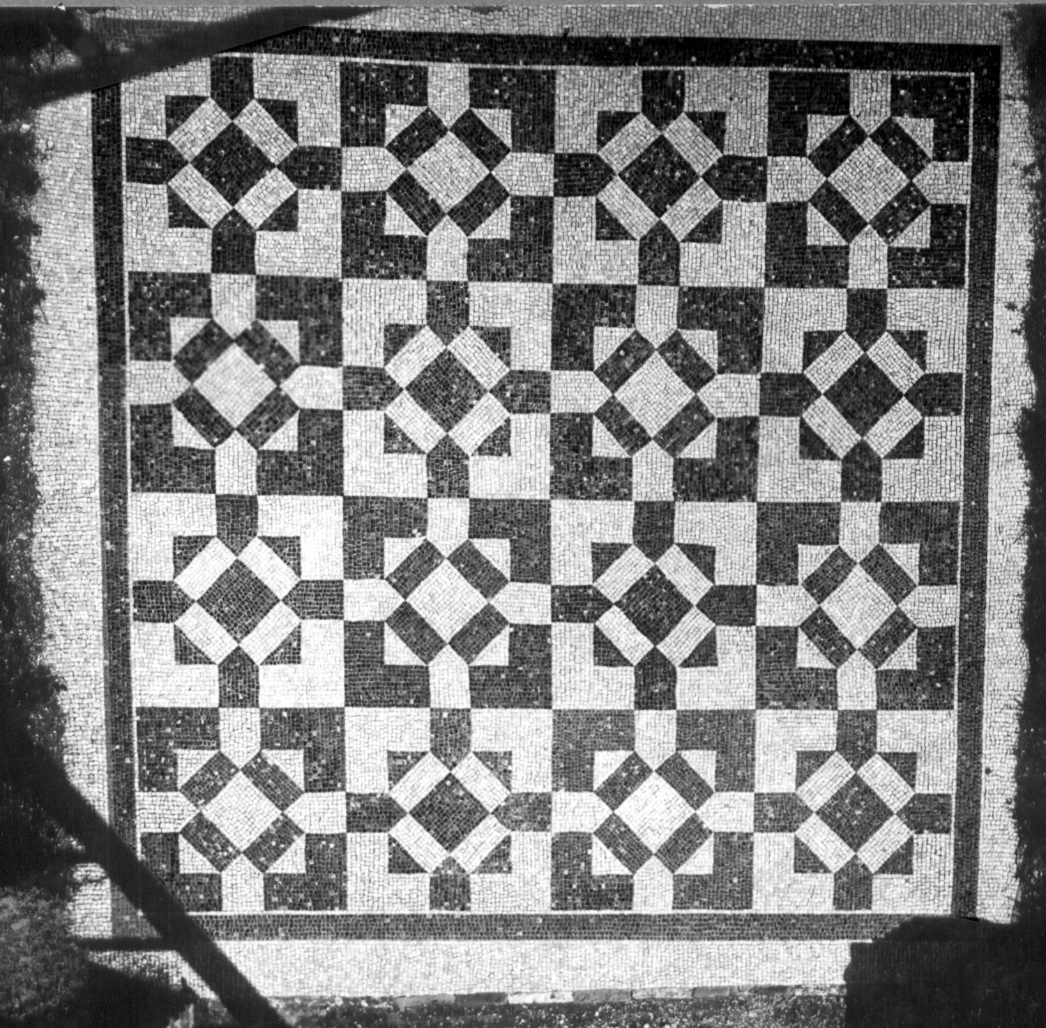 Different construction phases can be seen in the house, the first of which has been connected to the nearby small temples of the late Republican period and may have belonged to the individual who built them, Publius Lucilius Gamala. The brick building now visible can be dated to around the mid- 2nd century AD: the inscription preserved on a fistula (lead water pipe) names the owner of the house during this phase as Lucius Apuleius Marcellus, perhaps to be identified as the author of the Metamorphoses, a famous literary work of the 2nd century AD. The domus (house) had a courtyard (A) aligned with the entrance, which takes the form of an atrium with eight Corinthian columns and an impluvium (central basin), with a row of rooms opening onto it to the east whilst other rooms were arranged in the west wing. Most of the rooms had mosaic floors.