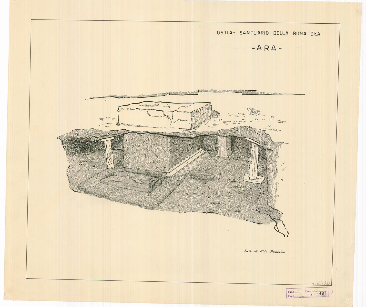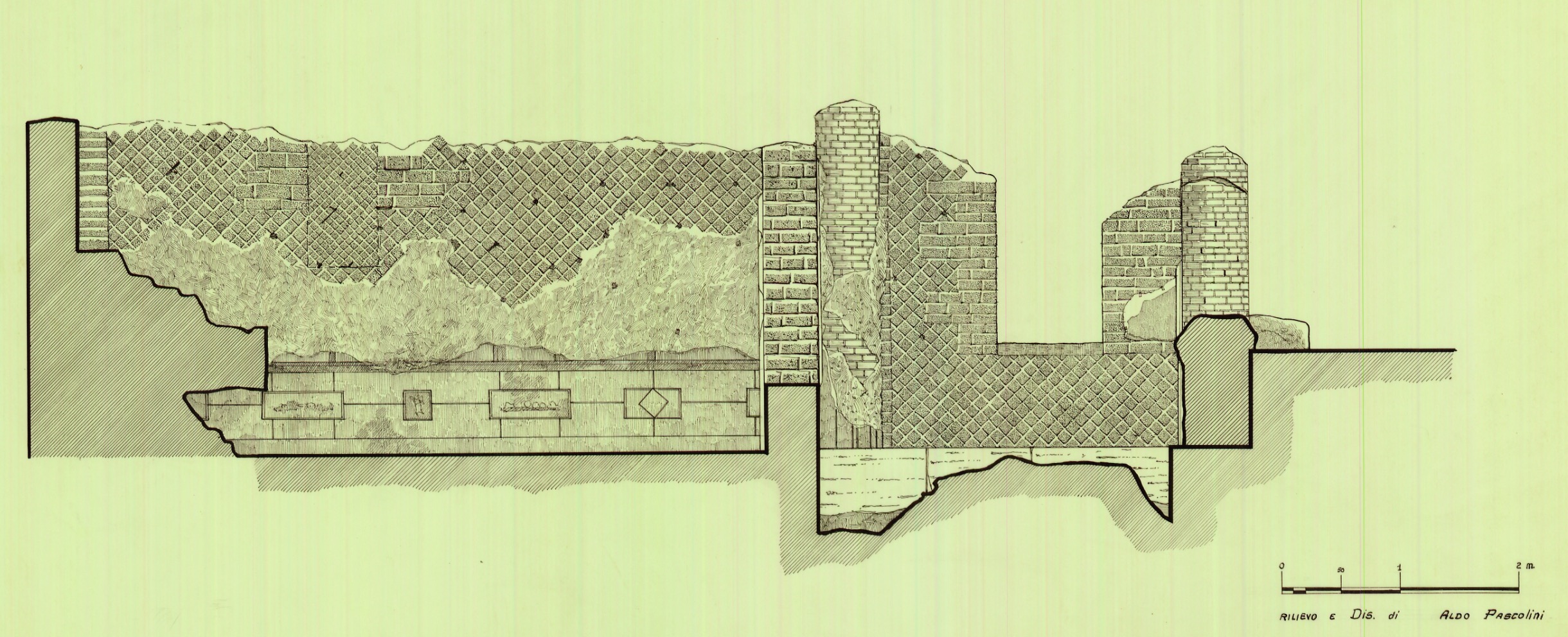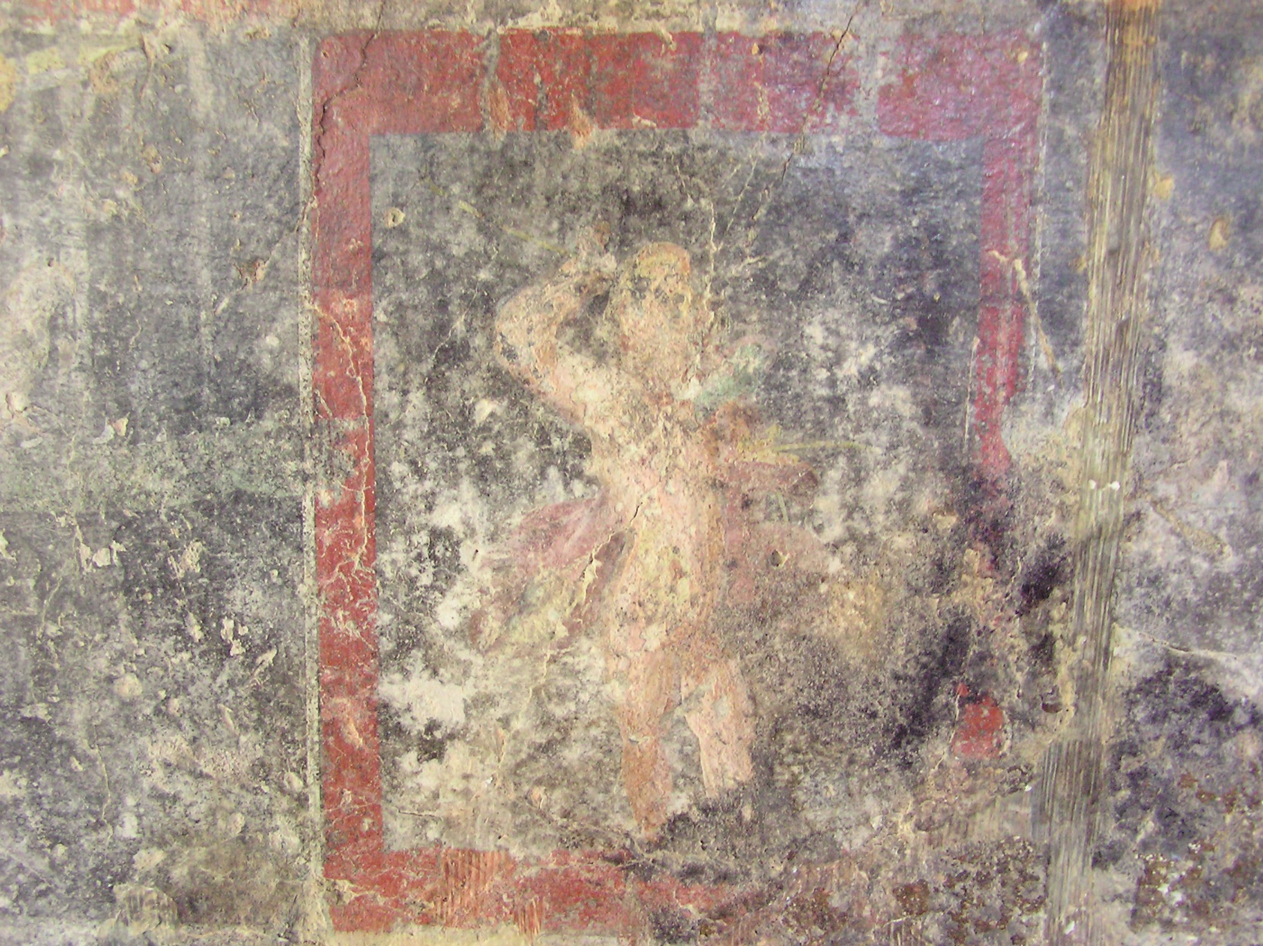 The sanctuary, dedicated to the ancient goddess of agricultural fertility and health, was surrounded by a wall 3 since hers was a mystery cult. The oldest features date to the 2nd century BC, but in its current configuration with a porch in opus reticulatum and brick columns the temple (A) dates to the 1st century AD. Also of this period is the dedication to the goddess, on the sanctuary’s well (C), on which we read the name of Terentia, a noblewoman of the Augustan period belonging to one of Ostia’s most important families. The sanctuary had a portico (F) with wall paintings in which some small rooms were installed in the late 2nd century AD. The cult of the goddess, reserved exclusively for women and also practiced in another sanctuary in the city, remained active until the 4th century AD.