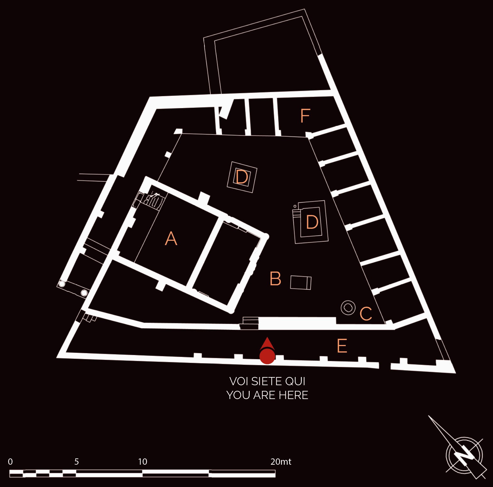 E Entrance corridor to the Terme del Nuotatore