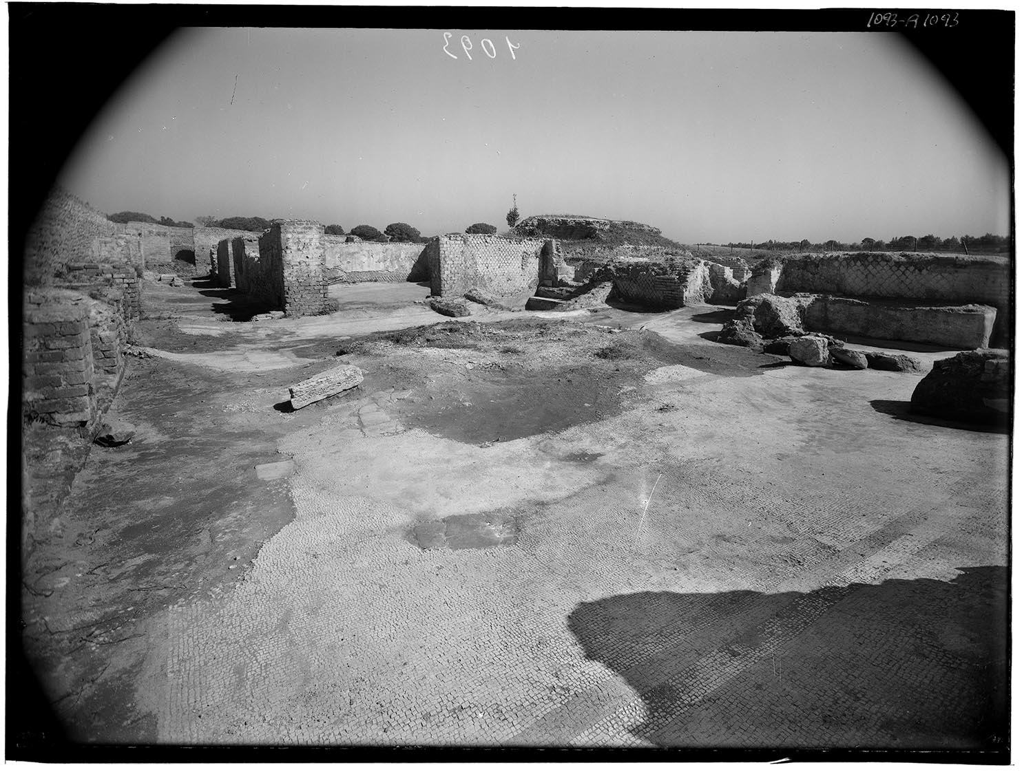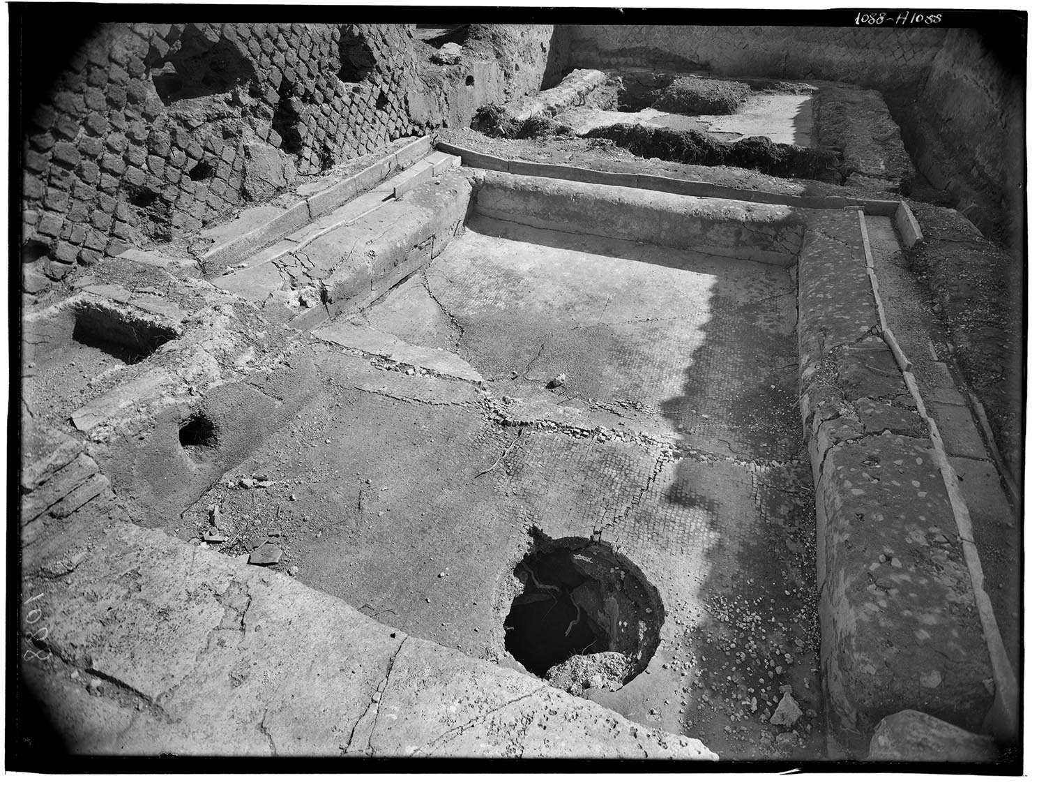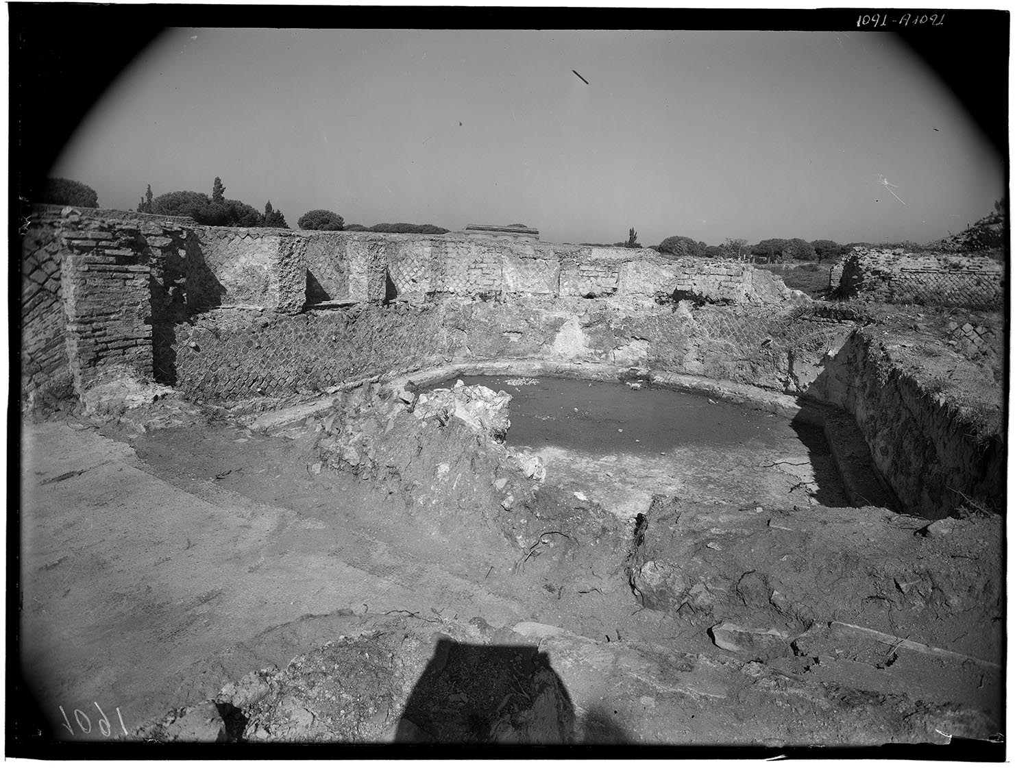 Built in the late Flavian period (late 1st century AD), the baths underwent significant transformations during the 2nd century and were then precociously abandoned in the mid-3rd century AD. The entrance corridor built through the nearby Sanctuary of the Bona Dea led into a vestibule (A) giving access both to the gymnasium sector and the bath rooms. A visit to the baths began in the frigidarium (room for cold baths) (B), which has a mosaic floor depicting a swimmer. This was followed by two tepidaria (rooms for warm baths) (C), one of which was decorated with stucco reliefs, a laconicum (steam room) (D) and two calidaria (rooms with hot baths) (E). A large two-storey cistern (G) guaranteed the baths’ water supply; they were also fed by the city aqueduct through lead pipes.