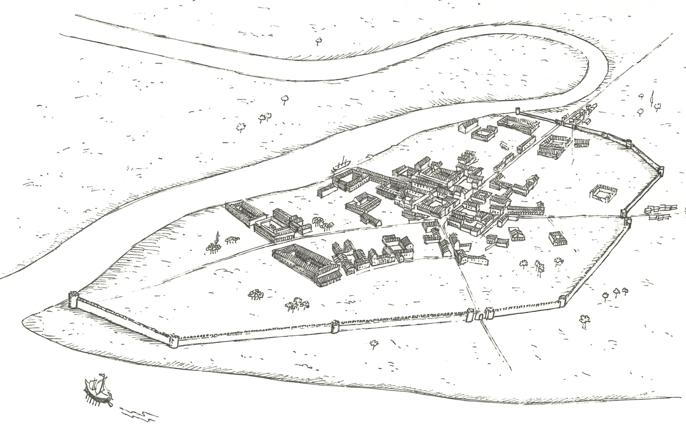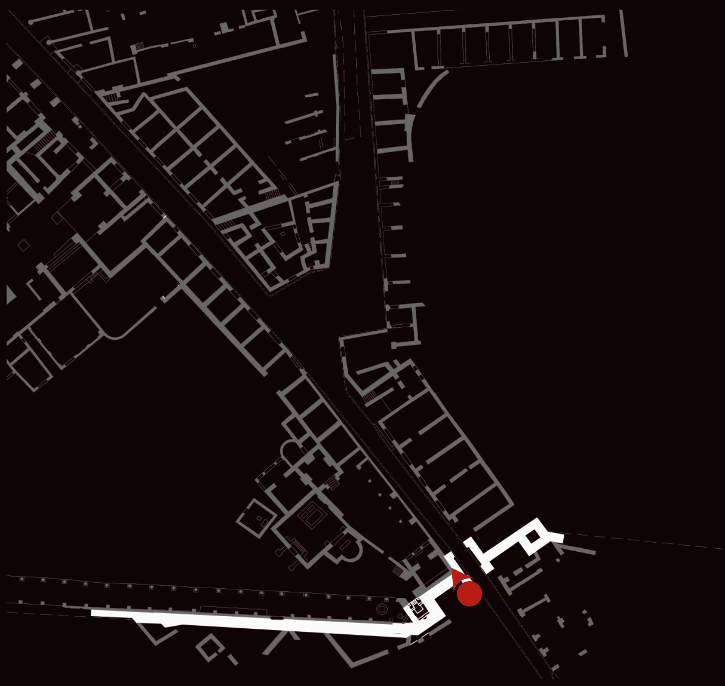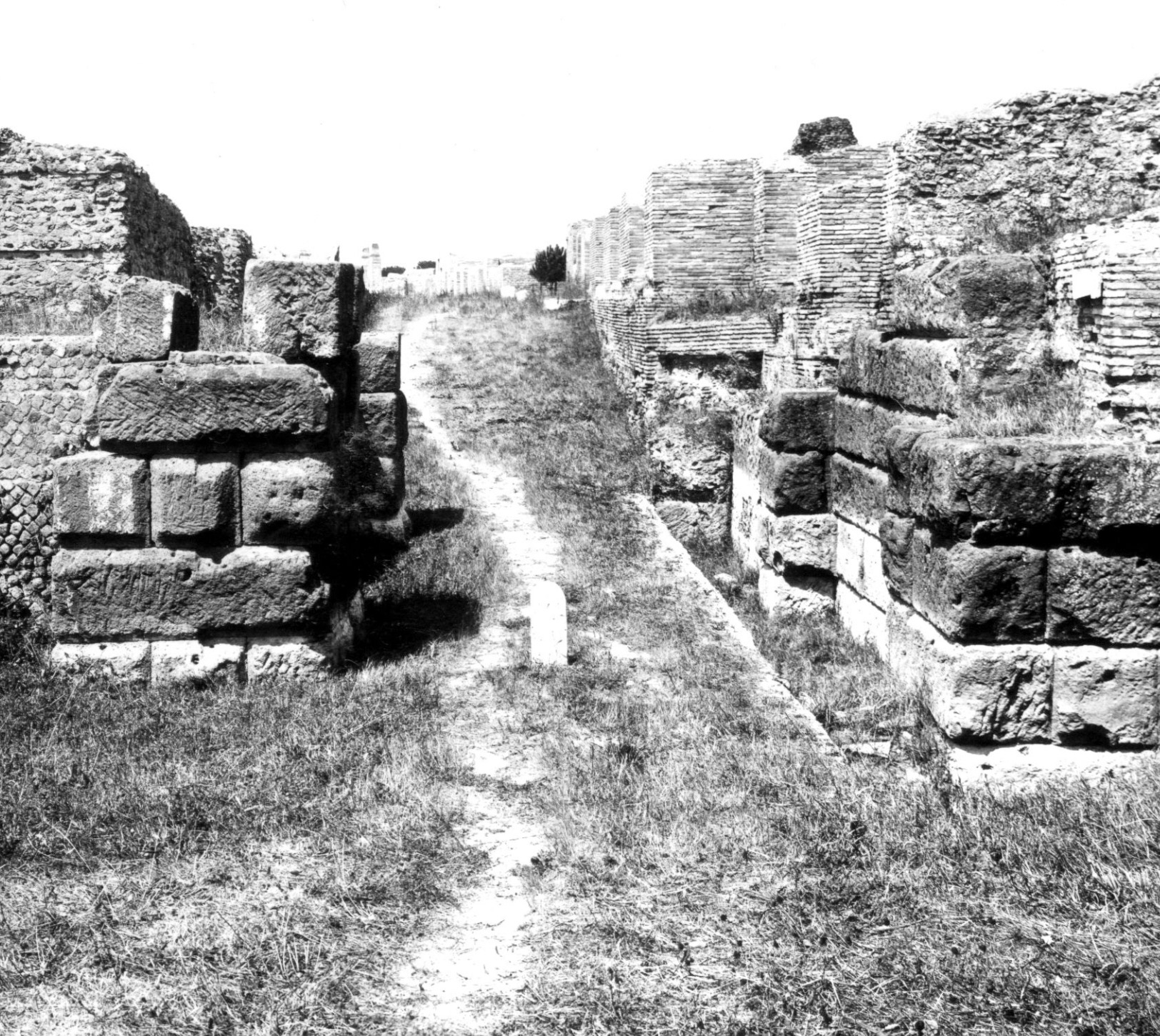 The gate in the Republican walls, built in around the mid-1st century BC, marks the entrance into the city from the Via Laurentina, an ancient road leading from Laurentum (a town in Lazio south of Rome); the stretch of road inside the city was Ostia’s Cardo Maximus. The gate’s modern designation seems to be derived from the name Laurentia, known from Christian sources. The gate, consisting of a single room, was flanked by two square towers and had a facing of tufa blocks. On the south side the sockets for the wooden door can still be seen. In the Imperial period the western tower, having lost its original function, was used for the taurobolia (ritual bull sacrifices) that took place in the nearby sanctuary of the Magna Mater.