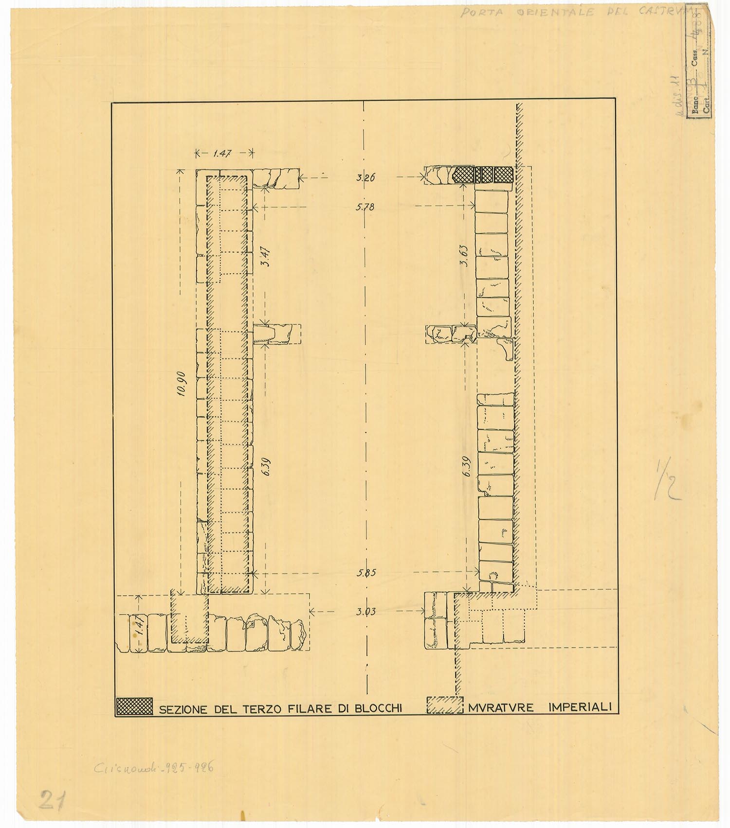 The castrum is the oldest part of the city of Ostia to be documented archaeologically; it dates to the 4th century BC. It is a fortified settlement surrounded by walls in tufa blocks with four gates, located at the ends of the main streets (the Cardo and Decumanus). Other streets at right angles subdivided the internal space into plots of regular shape occupied by temples, public buildings and especially houses. Already in the 3rd century BC, the settlement stretched outside the walls, which had lost their original defensive function: Rome’s expansion in the Mediterranean had gradually reduced the city’s military role and simultaneously increased its commercial vocation.