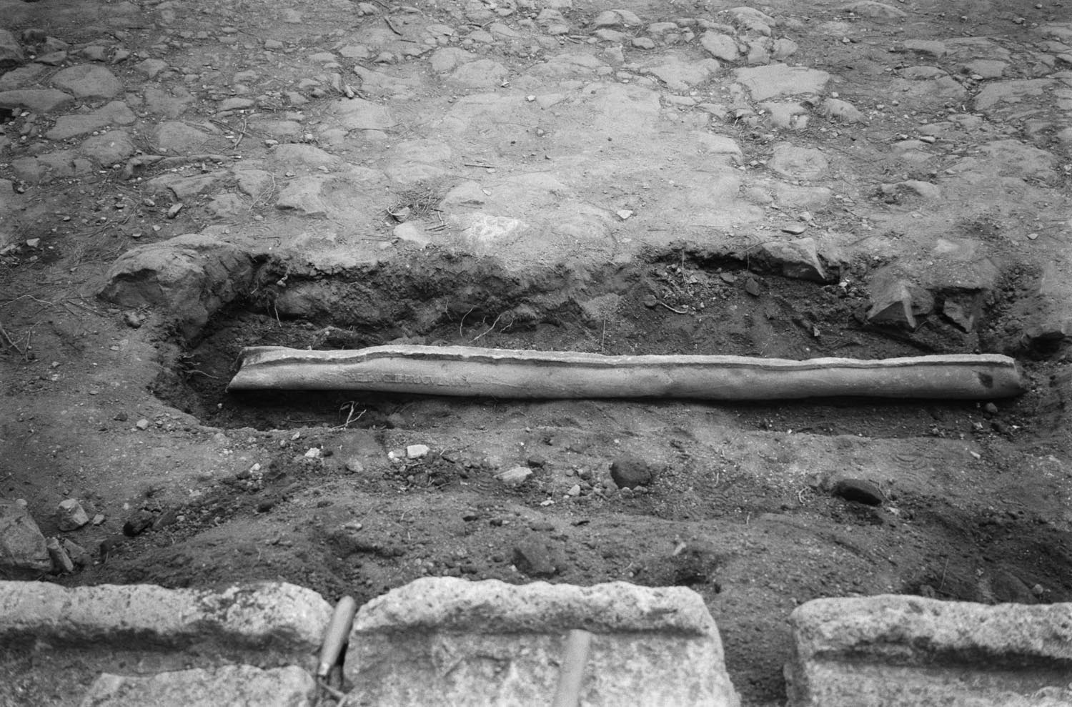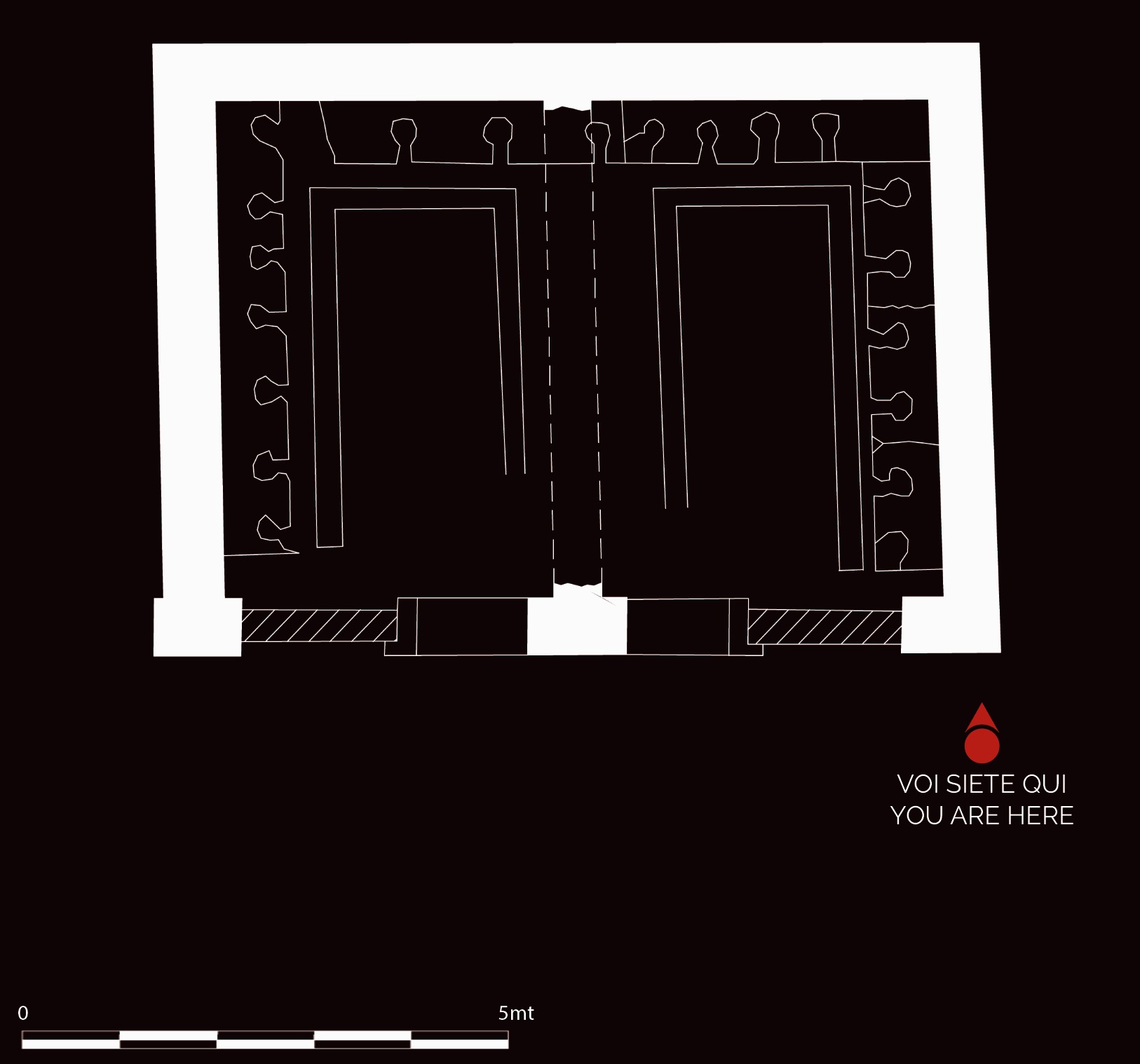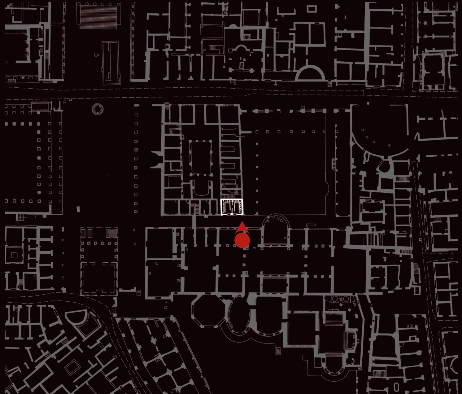 The latrine, one of the best preserved in Ostia, was built inside two shops of the Hadrianic period (AD 117-138). Its current appearance dates to the 4th century AD, as is evident from the presence of reused marble slabs, including some with inscriptions, from earlier abandoned buildings. It preserves a row of twenty marble seats with holes at the centre running around three sides; beneath was a channel along which the water drained away. On the fourth side, the room had a wash basin set against a pillar separating the two entrances: these had revolving doors, as we know from the presence of holes in the marble thresholds that served to hold them in place.