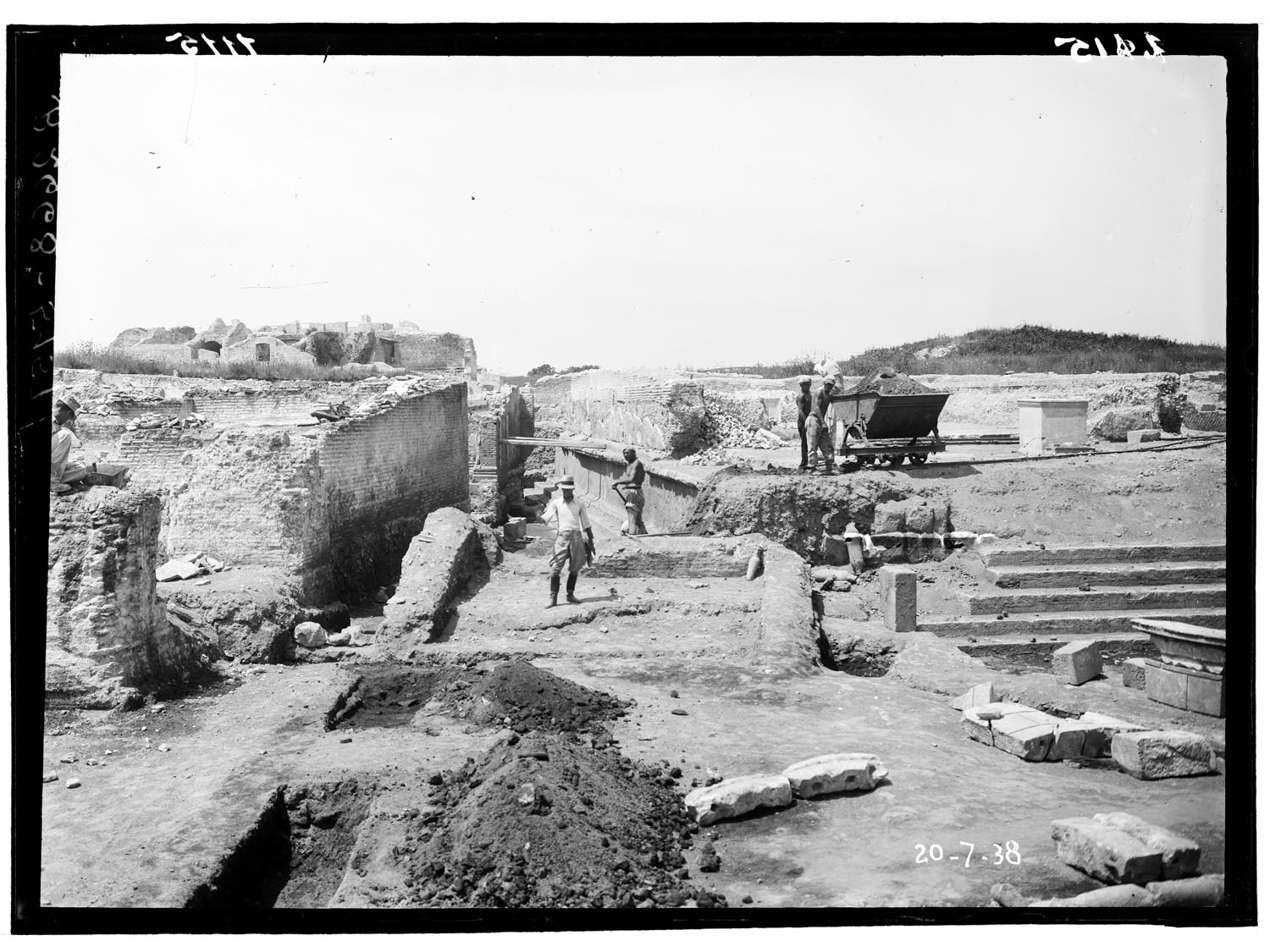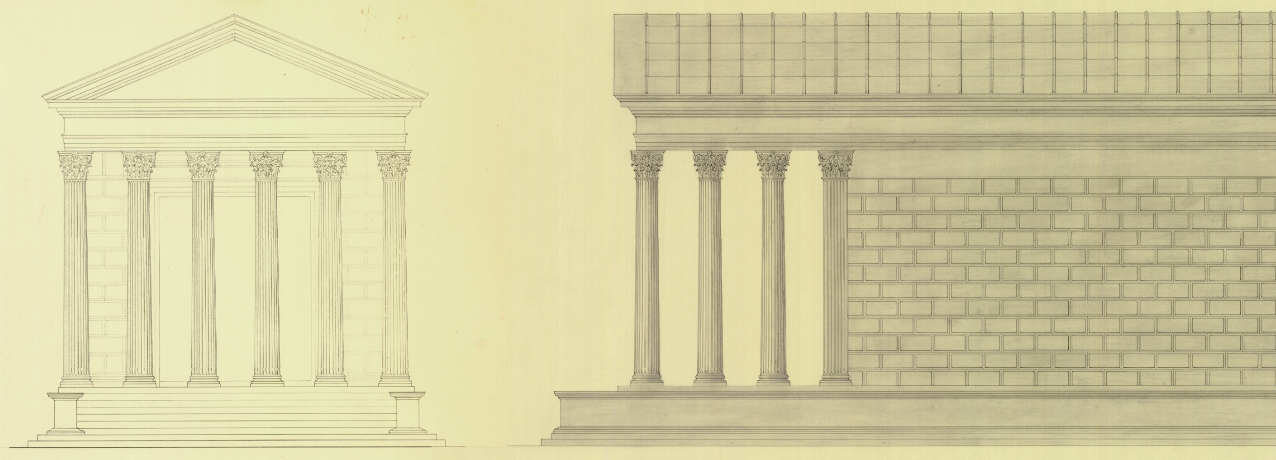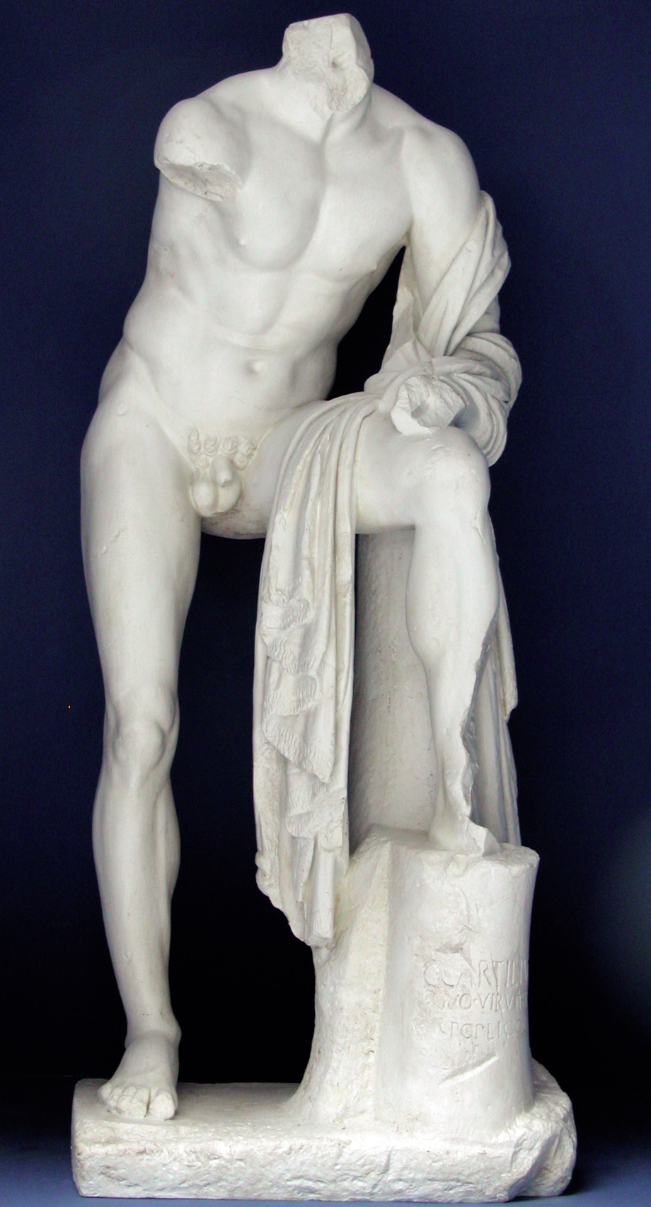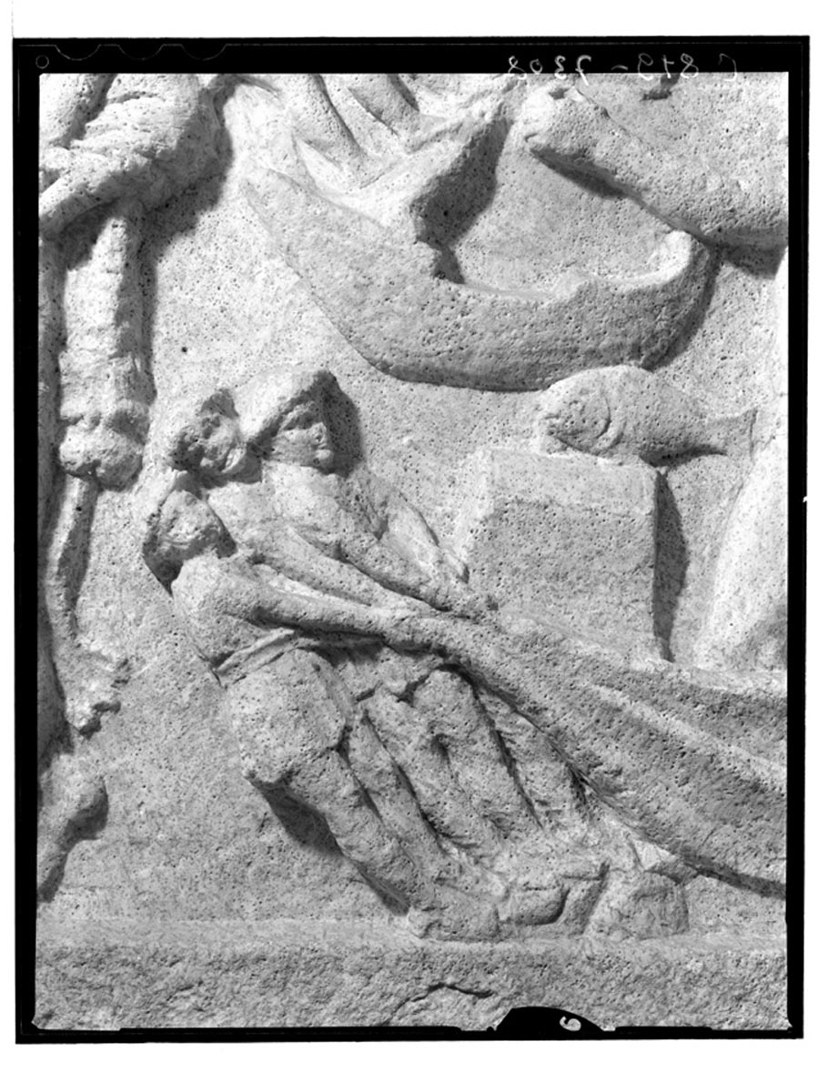 The temple of Hercules, built between the late 2nd and early 1st century BC, stood on a high podium and had a porch with six columns along the front, accessed by a staircase. Inside the porch stands a copy of a votive statue of Cartilius 23 Poplicola, a leading figure in Ostia’s history during the 1st century BC, depicted as a resting athlete. The cult was oracular in nature, as we know from the marble relief found near the temple and dedicated by a haruspex (priest), depicting the miraculous discovery in the sea of a statue of the armed Hercules, and a subsequent scene of divination: the god’s iconography and the reference to an event of war suggest that the cult had military as well as commercial connotations. The cult’s importance is evidenced by its remarkable persistence, documented by the restorations of the temple until the 4th century AD.