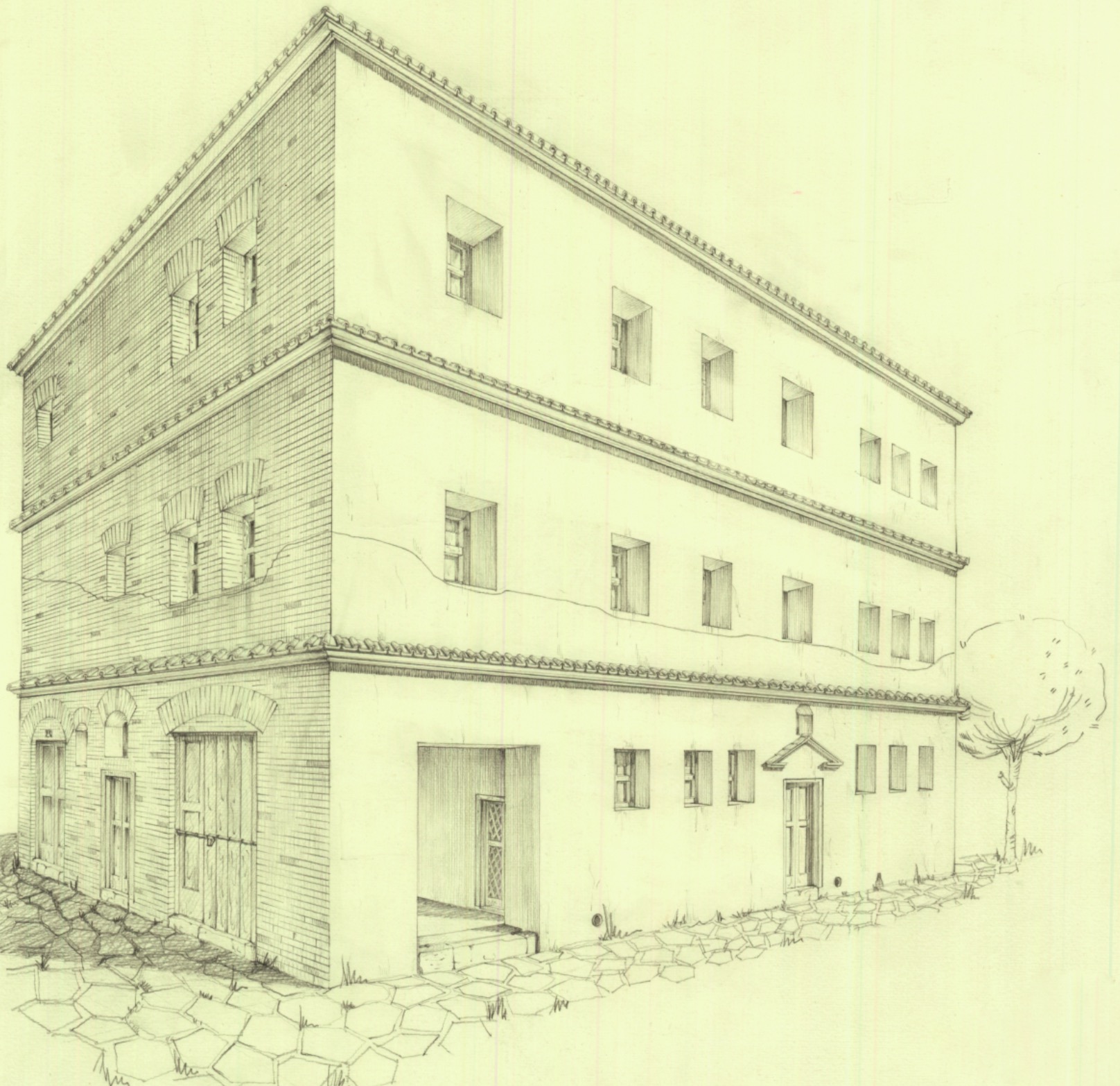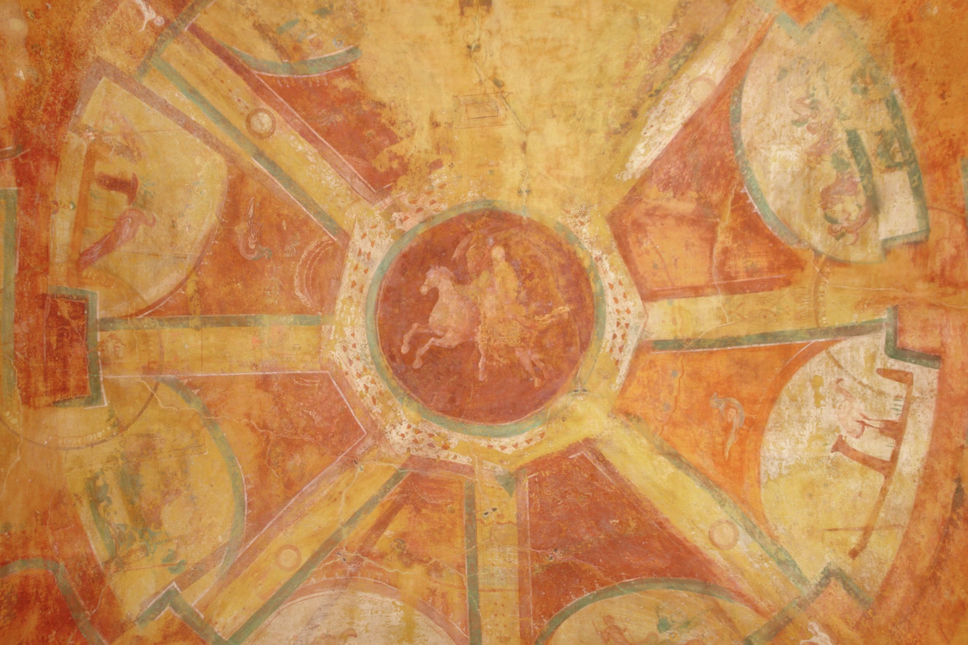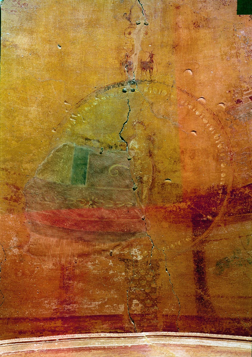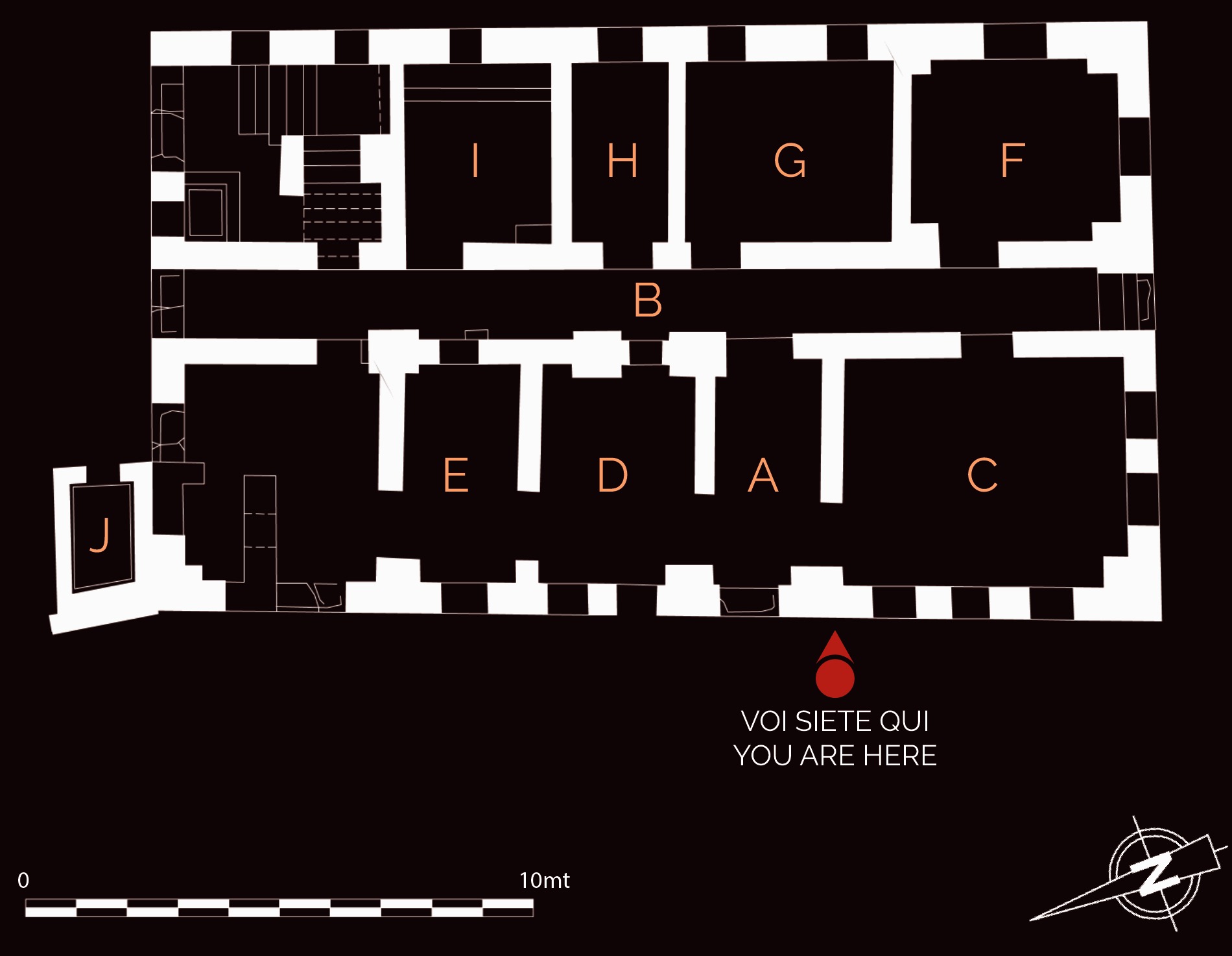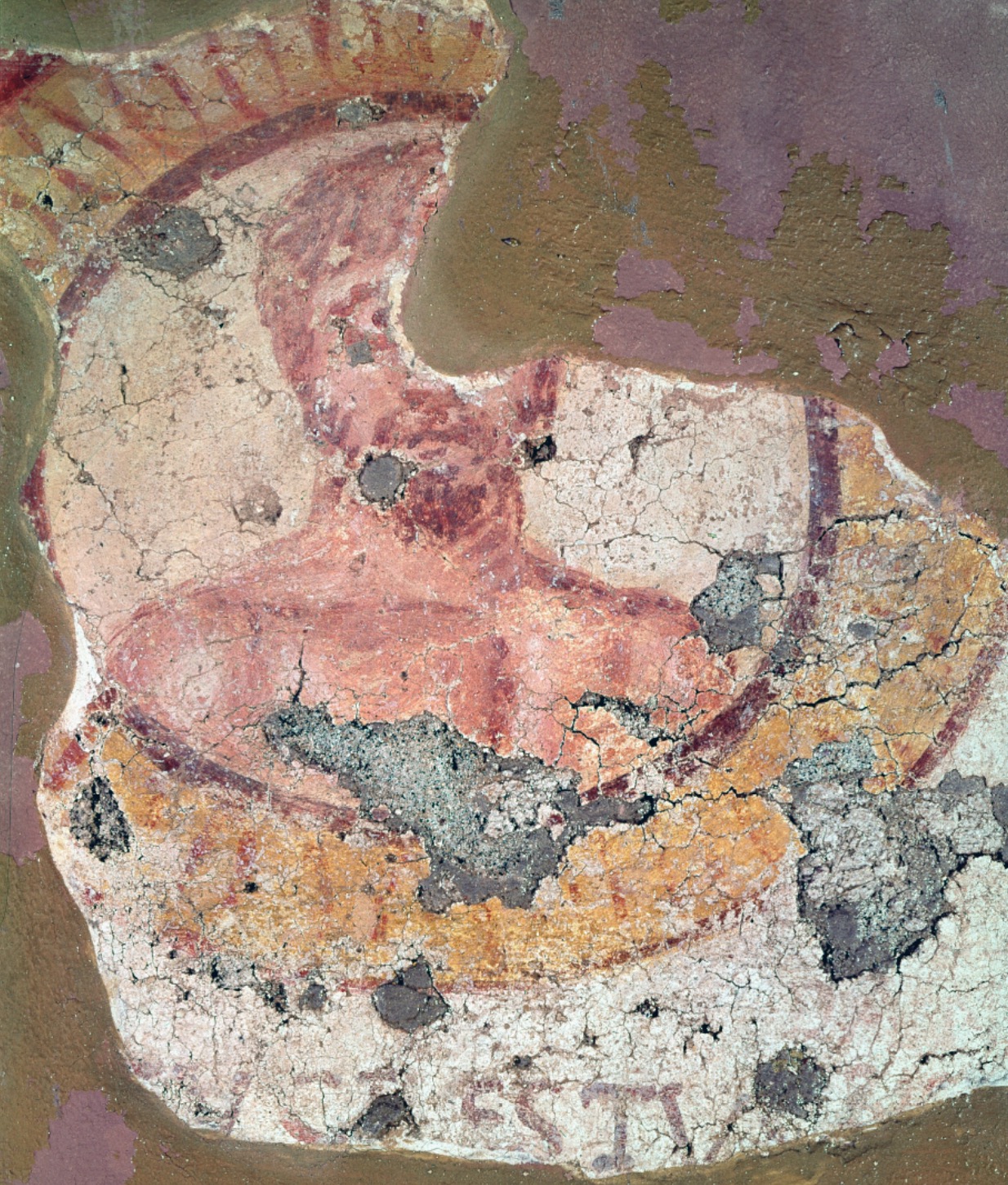 Built in around AD 120, the insula (residence) has an unusual layout: the rooms are arranged on either side of a central corridor (B). The public rooms (C-E) face the Case a Giardino, whilst the private (F-H) and service rooms, including the kitchen (I), look in the opposite direction. The mosaics can generally be assigned to the original phase of the building; the paintings dating to between the late 2nd and early 3rd century AD have a white ground in the private rooms and a yellow and red ground in the public rooms. In the 3rd century AD, one of the corner rooms in the house was turned into a wine bar (thermopolium) (J); its presence, together with the arrangement of the rooms, has suggested that the building may have been used as a hotel.