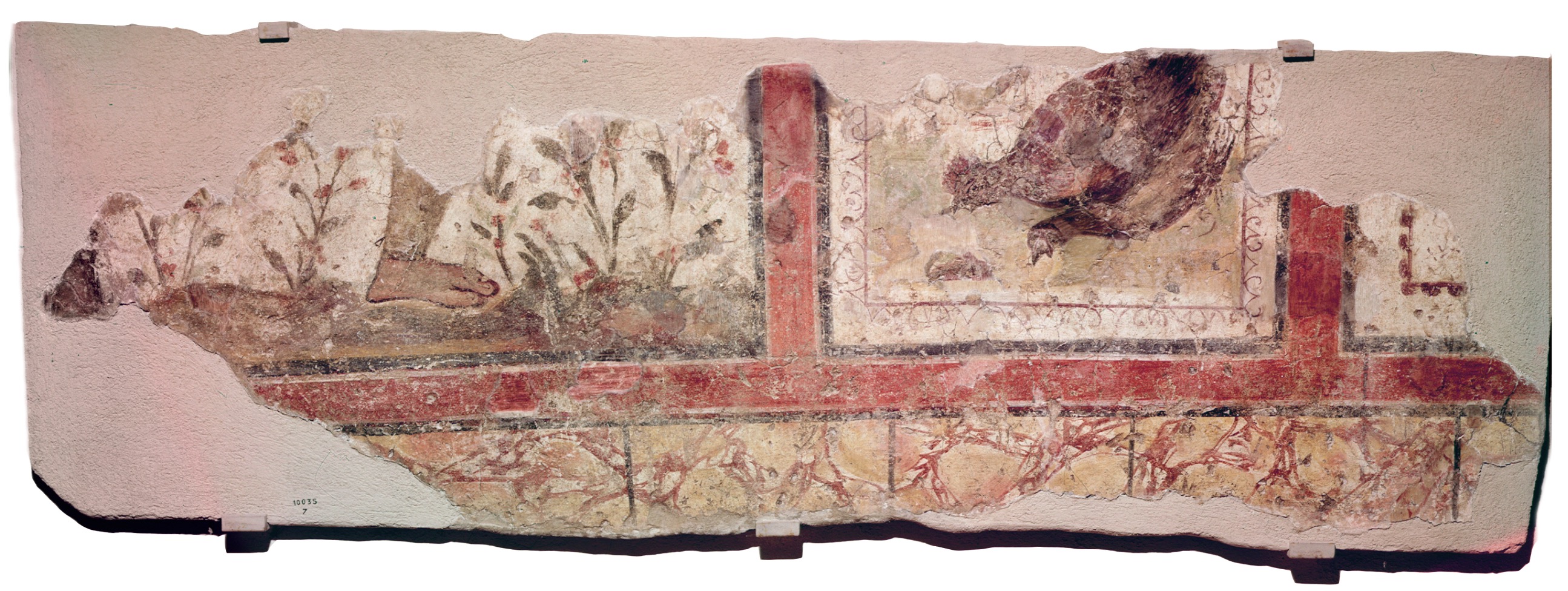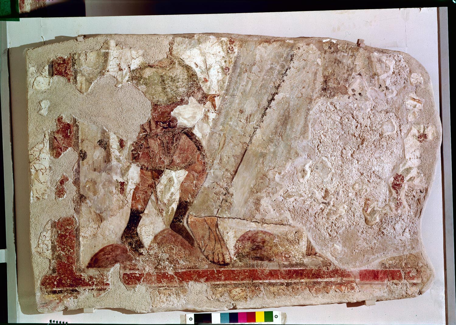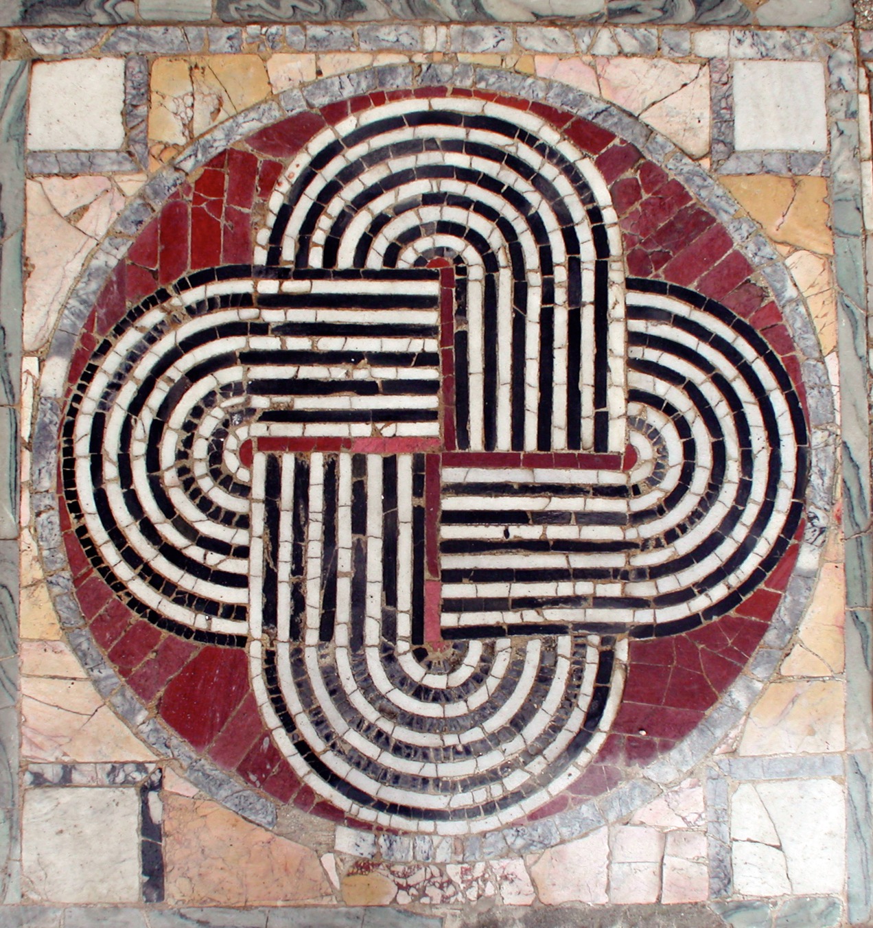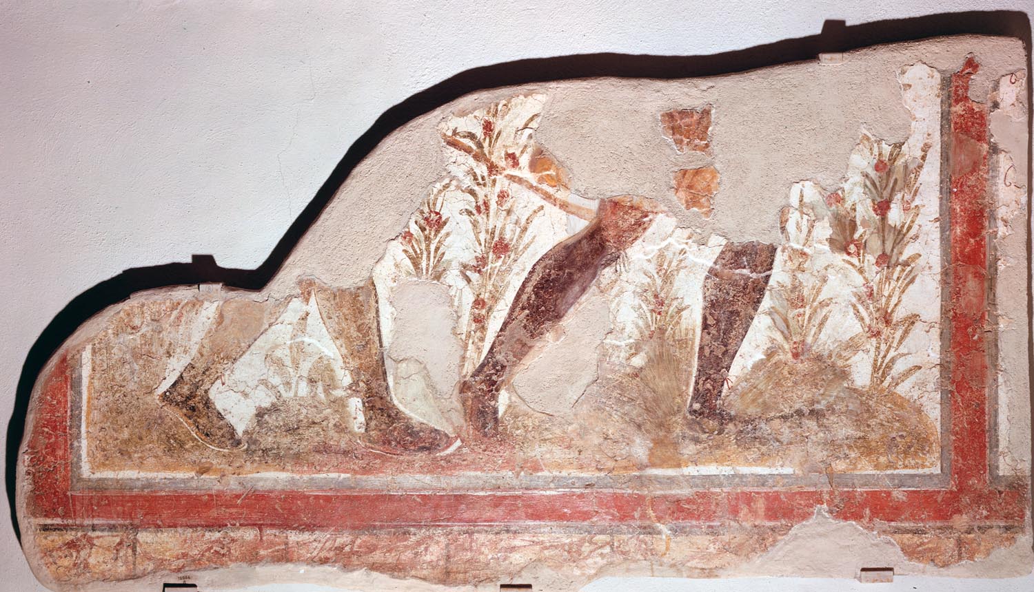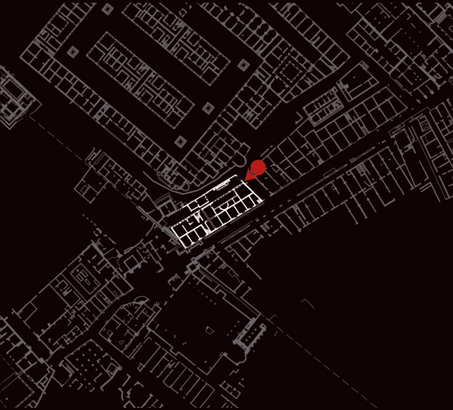 This wealthy domus (residence) was constructed in the second half of the 4th century AD, in an area previously occupied by two building complexes of the early 2nd century AD. It was entered through a courtyard (A), which provided light to the residence, embellished with a marble nymphaeum decorated with niches. Opening onto the courtyard through a tripartite aperture was a huge room (B) decorated on the floor and walls with opus sectile inlays, also preserved in other rooms of the domus; a porticoed corridor leads to the innermost rooms of the house. The façade overlooking the Decumanus is enhanced by the presence of a large vestibule, divided into two rooms (C-D), originally decorated with wall paintings showing scenes of rural life.