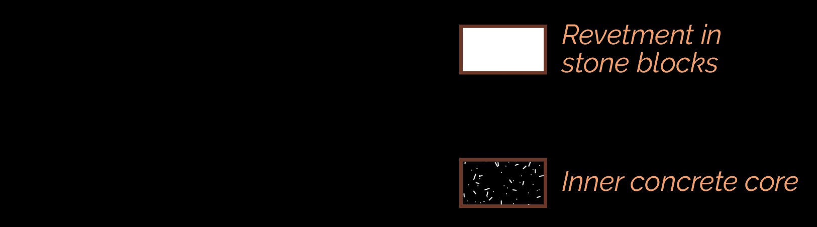 The funerary monument was built in around 20 BC along a cemetery road in the area outside the Porta Marina. The tomb’s square base had a revetment of travertine blocks; the central body was covered in marble on the front, and in travertine and tufa on the other sides; its corners were decorated with lesenes surmounted by little capitals. On the front is the inscription commemorating Caius Cartilius, an illustrious magistrate who held the city’s most important public offices, so popular that he earned for himself the nickname Poplicola (“friend of the people”). The figurative frieze running along the upper cornice of the monument, depicting a row of soldiers and a trireme ship, probably commemorates a victory won under his command against an enemy from the sea.