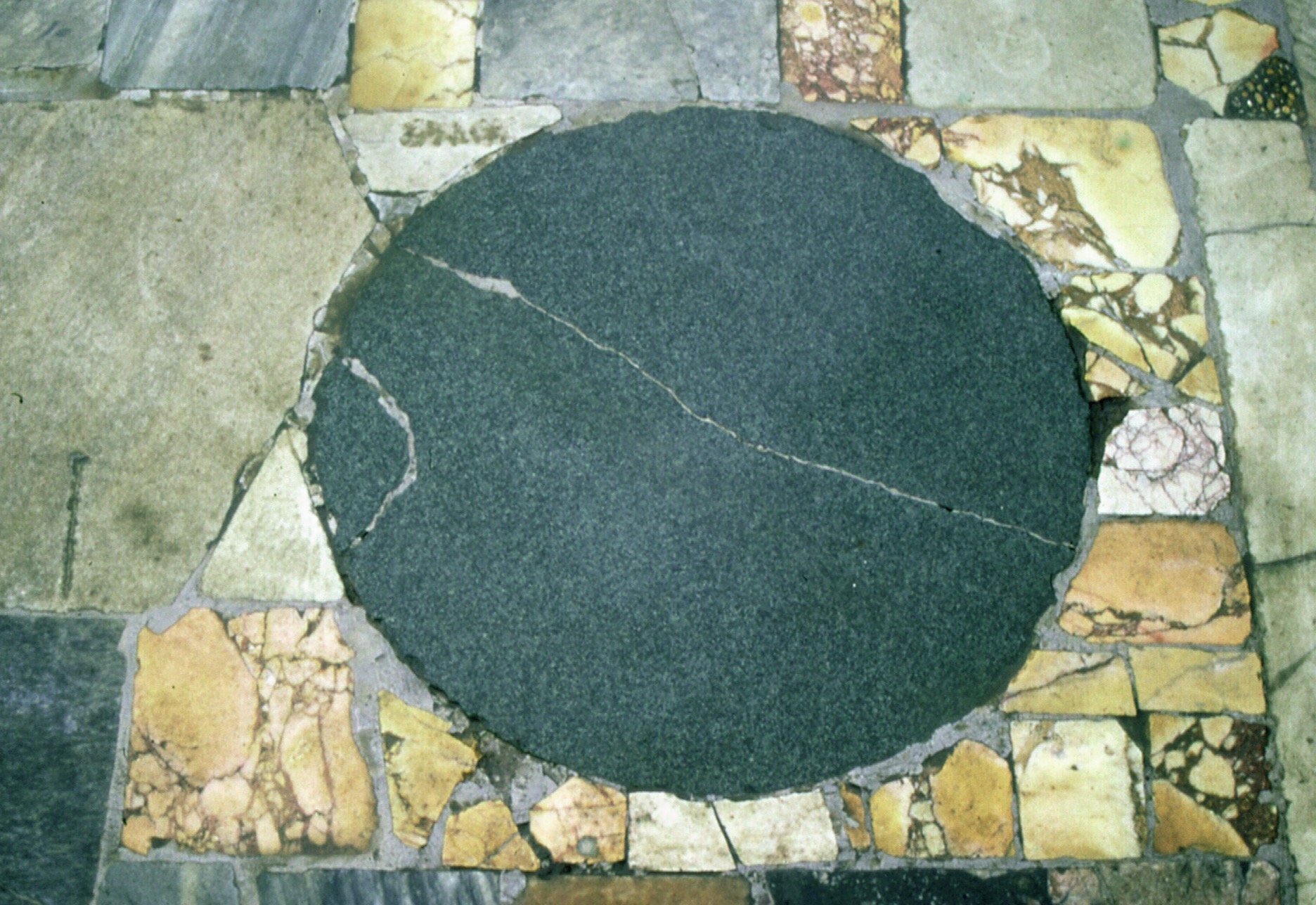 Ostia, Domus di Via della Caupona. Tondo in serpentina moschinata nel pavimento tardo della piccola sala interna