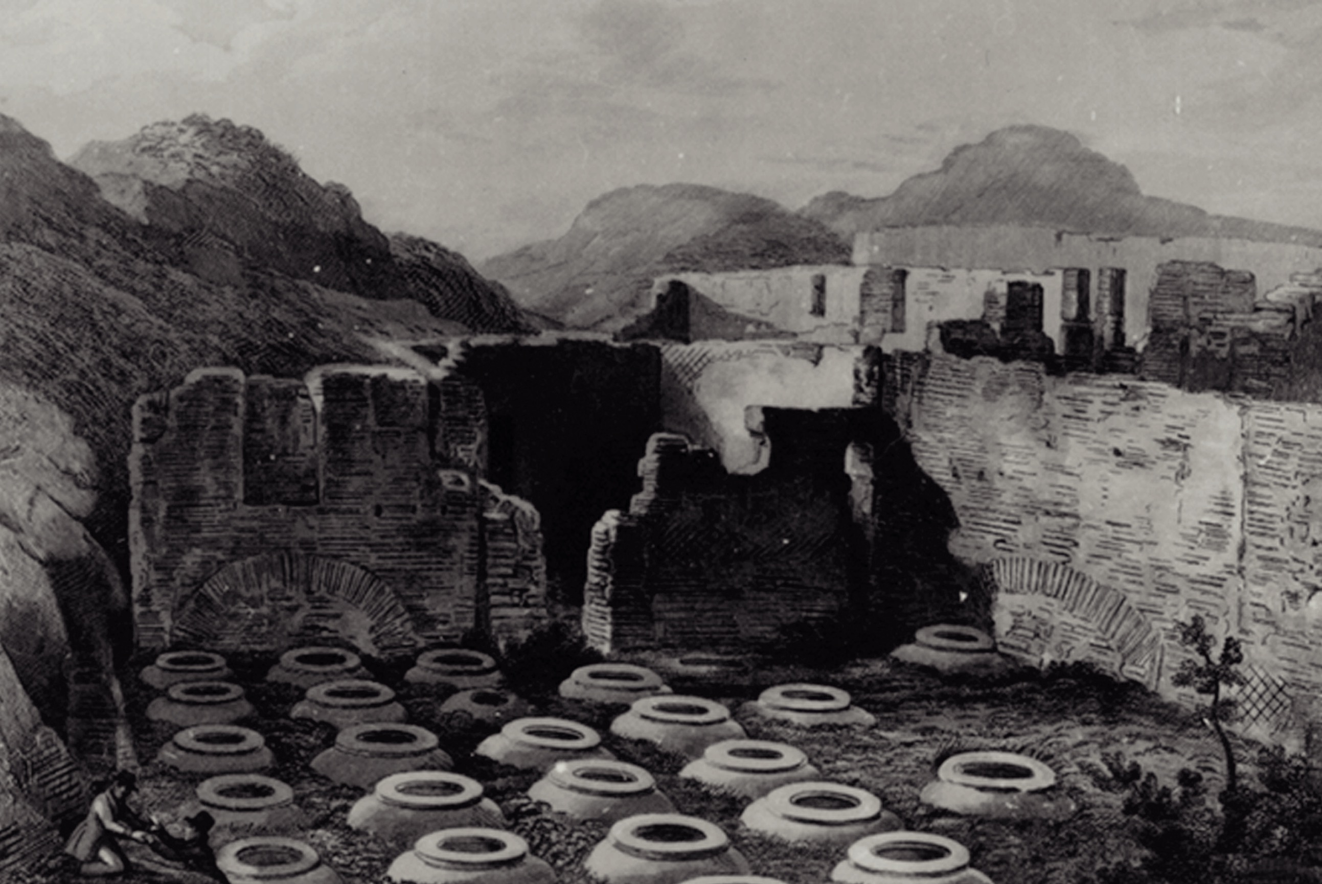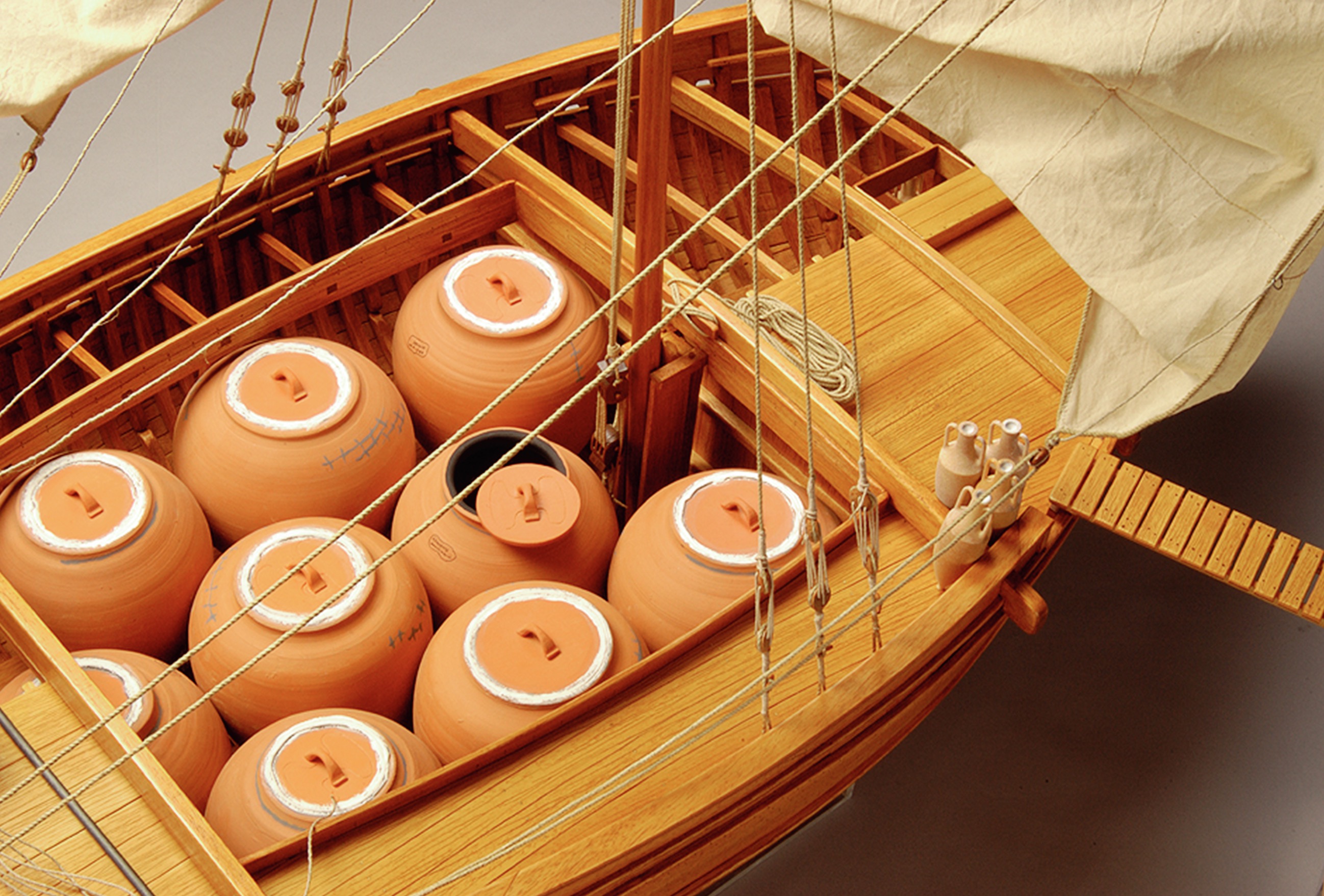 I dolia sono grandi contenitori in terracotta di forma approssimativamente sferica, utilizzati a partire dall’età repubblicana fino al Medioevo per contenere derrate alimentari liquide, come olio e vino. Essi recano spesso iscrizioni che ne indicano la capacità, misurata in amphorae e generalmente pari o superiore a 1000 litri, o bolli che forniscono indicazioni circa la loro produzione: tre degli esemplari esposti conservano marchi che ne documentano la provenienza da Minturno, nel Lazio meridionale, e la cronologia (intorno alla metà del I secolo d.C). I dolia erano impiegati sia per il trasporto sia per la conservazione delle merci: gli esemplari esposti, recuperati a più riprese al largo della costa laziale, facevano certamente parte dei carichi delle navi onerarie che solcavano il Mediterraneo; alla conservazione erano invece adibiti i dolia interrati (detti defossa) visibili in numerosi edifici ostiensi, quali ad esempio il Caseggiato dei Doli e la Casa di Annio.