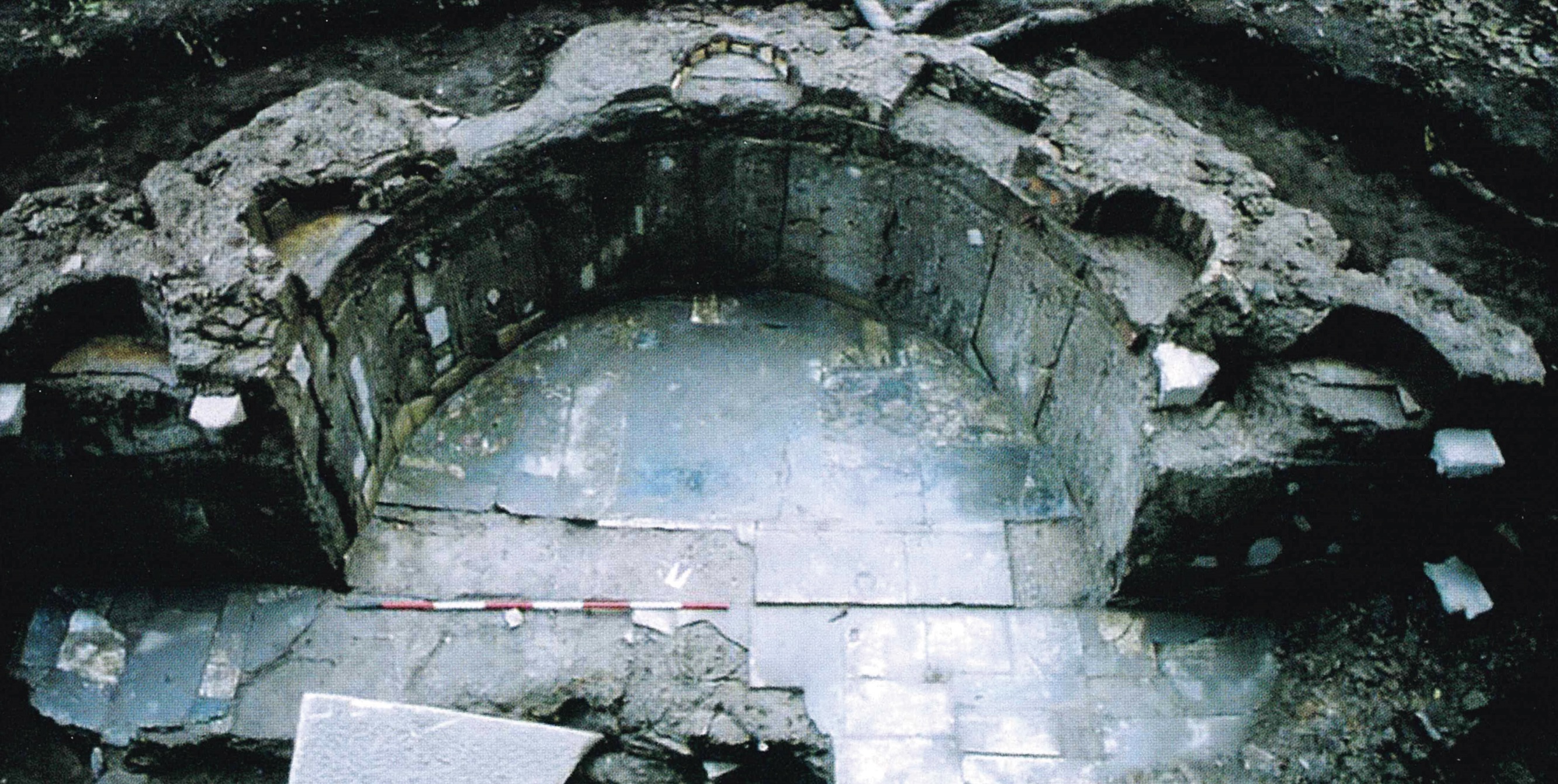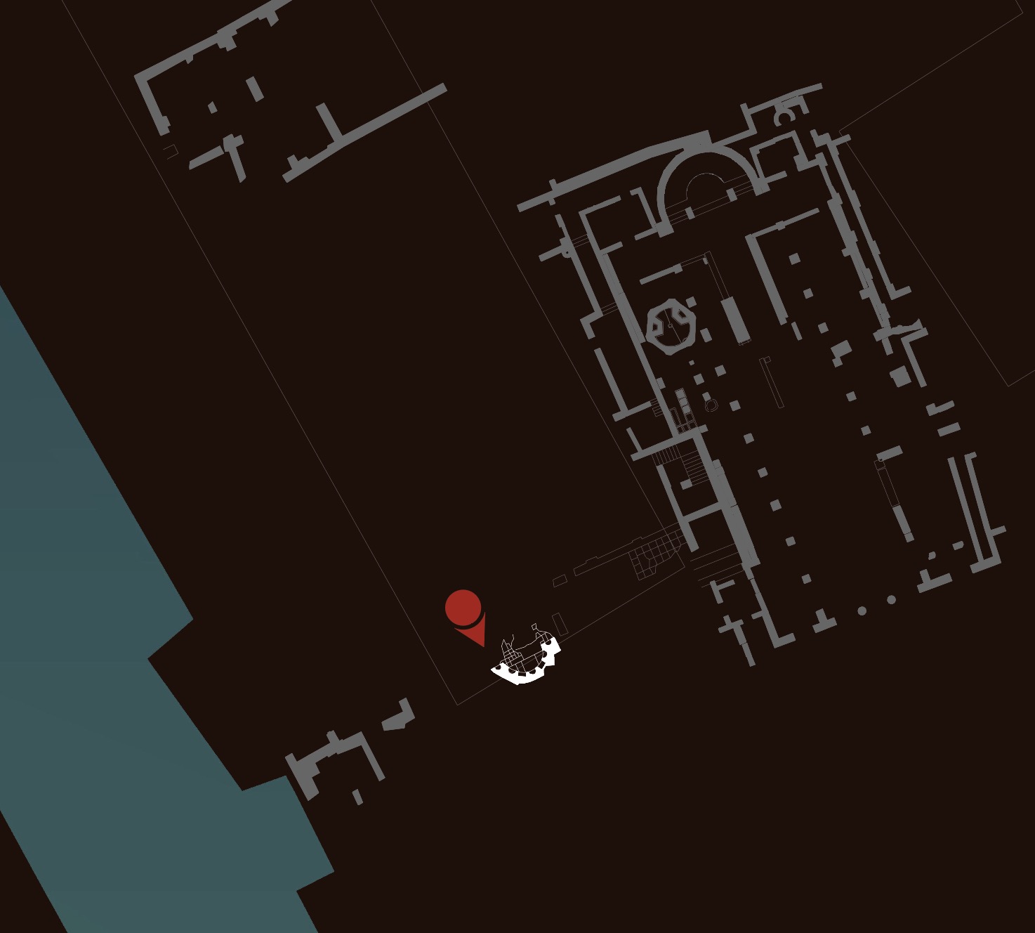 Questa fontana monumentale va messa probabilmente in relazione con il complesso residenziale identificato sotto la vicina basilica e databile ai primi decenni del IV secolo d.C.. La fontana va infatti collocata, per la pianta semicircolare con nicchie contornate da edicole e per l’uso di marmi di reimpiego, proprio nell’età tardoantica. A partire dalla fine del VII secolo d.C. il Ninfeo, ormai in abbandono, fu riempito con scarichi di rifiuti. Infine, tra la fine del IX e il X secolo d.C. l’area dell’edificio venne rioccupata da una sepoltura.