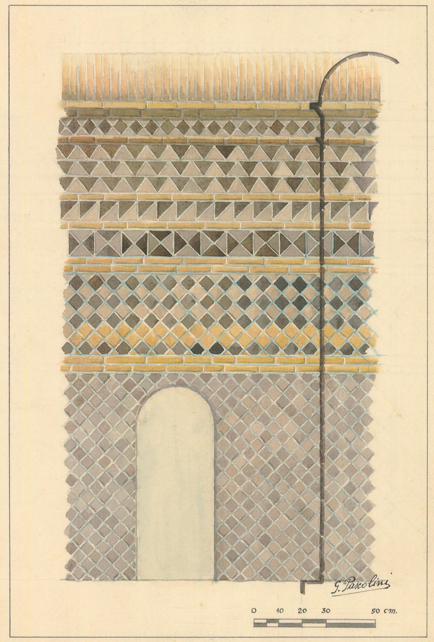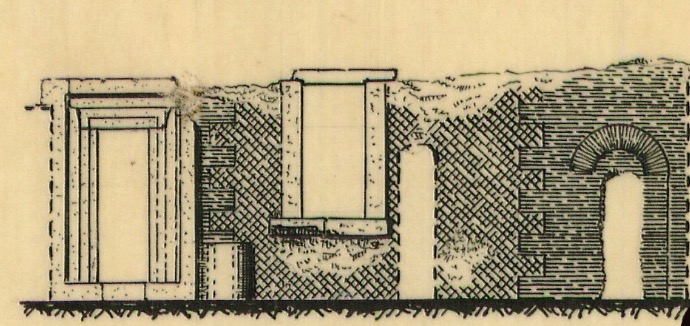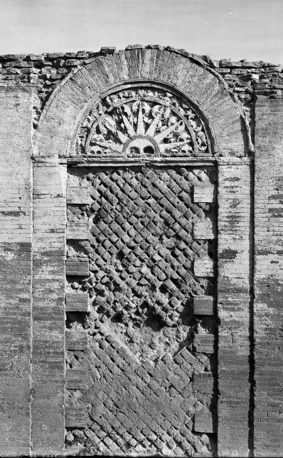 Dettaglio del prospetto con decorazione in pomice e cotto della Tomba n. 9 dalla Necropoli della Via Laurentina (G. Pascolini)