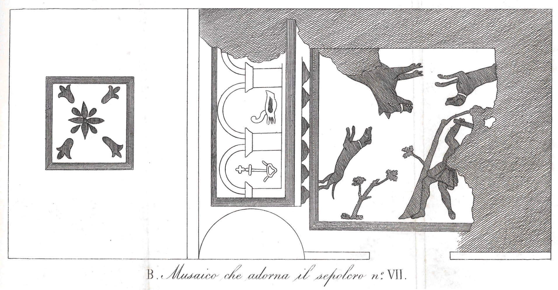 Costruita agli inizi del I secolo d.C., la tomba si presentava inizialmente come un recinto funerario in opera reticolata. Di particolare pregio è la facciata nord, caratterizzata dalla presenza di elementi architettonici in laterizio sormontati da archi: le lunette sono decorate a intarsio policromo con mattoni gialli e rossi, alternati a elementi in tufo e in pietra pomice. Nella seconda metà del I secolo d.C., la tomba fu trasformata in un colombario, con nicchie per le urne cinerarie lungo le pareti; a partire dal II secolo d.C. vennero aggiunte nicchie più grandi per sepolture a inumazione (arcosolia). In questa ultima fase si aggiunsero due ambienti di collegamento verso la Via dei Sepolcri, posti ad una quota più alta rispetto a quella originaria.