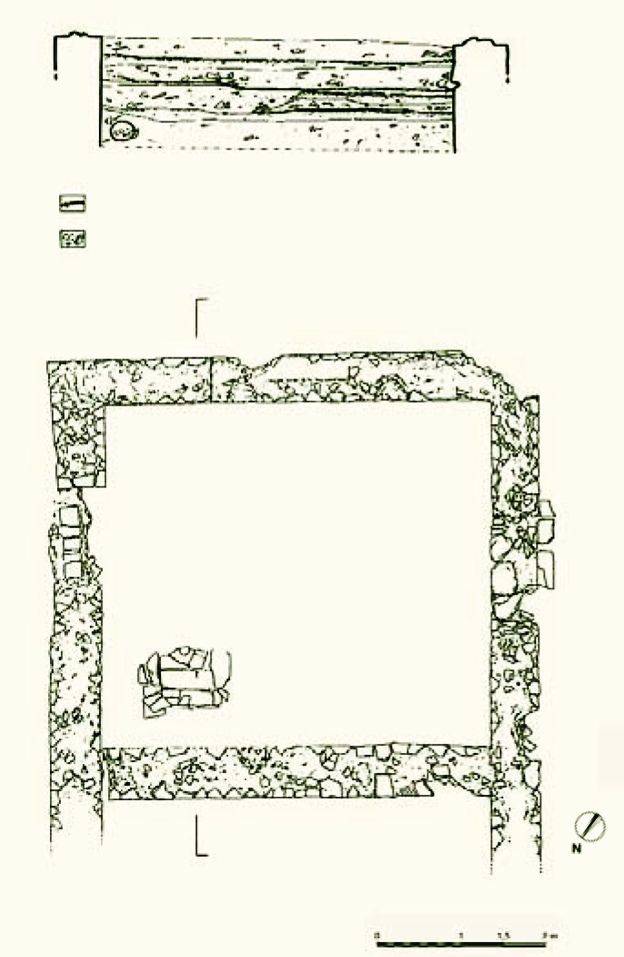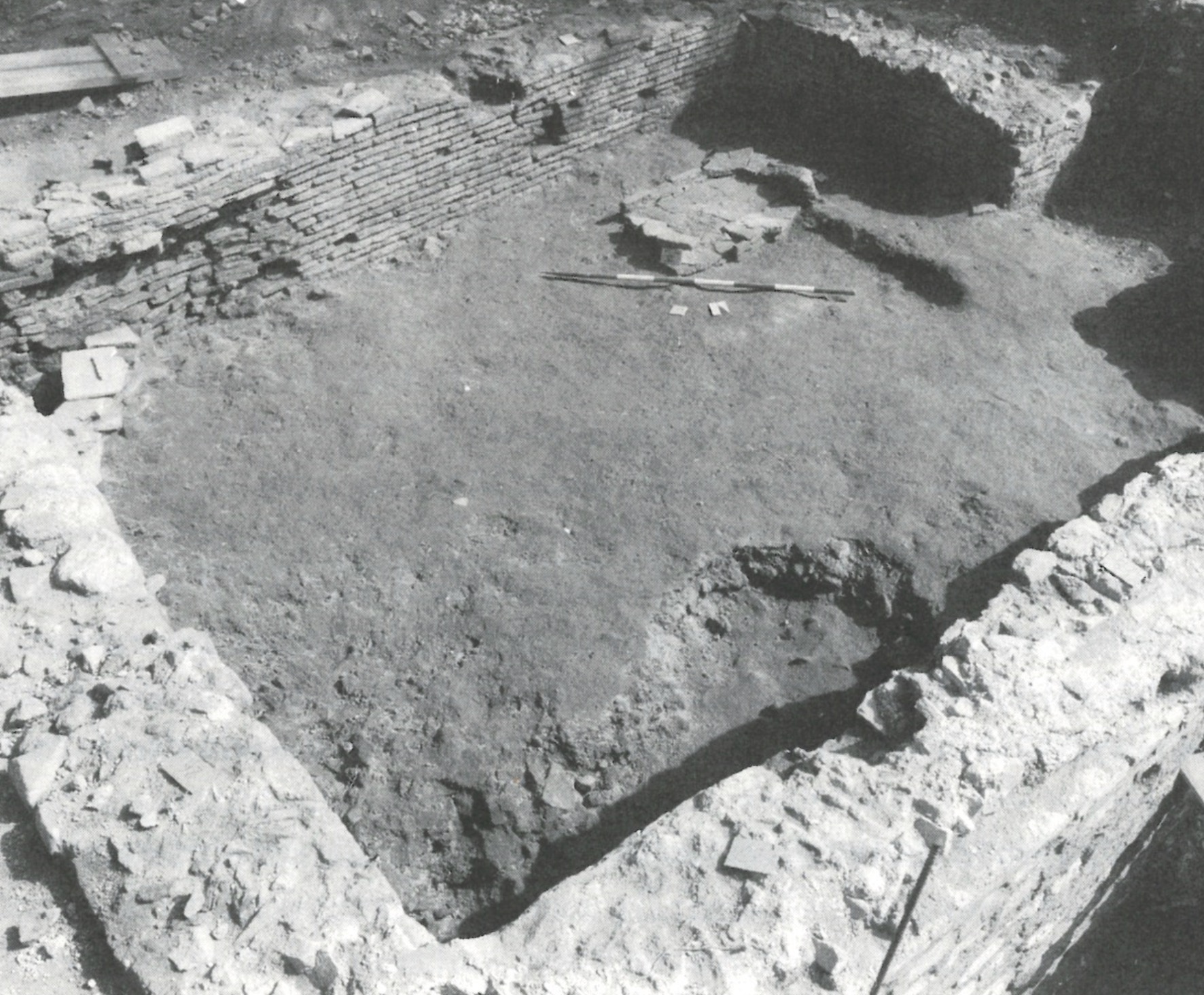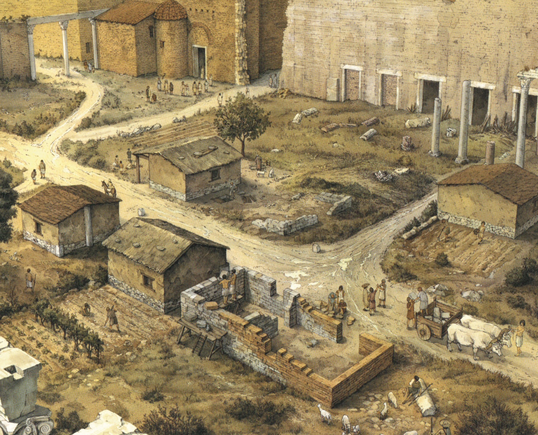 Questa abitazione, risalente all’età altomedievale (VIII-IX secolo d.C.), impiegava come basamento i muri perimetrali di un ambiente di età romana, consolidati con laterizi legati con argilla. Si tratta probabilmente di una casa a un piano (domus terrinea), simile a quelle rinvenute anche a Roma nel Foro di Cesare. Il rinvenimento di uno spesso strato di argilla fa ipotizzare che l’elevato fosse costituito da pareti di terra pressata. In un angolo della casa sono stati ritrovati tre focolari sovrapposti, costruiti con mattoni di recupero.