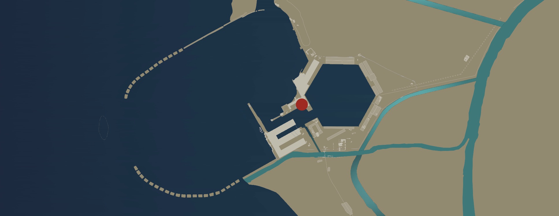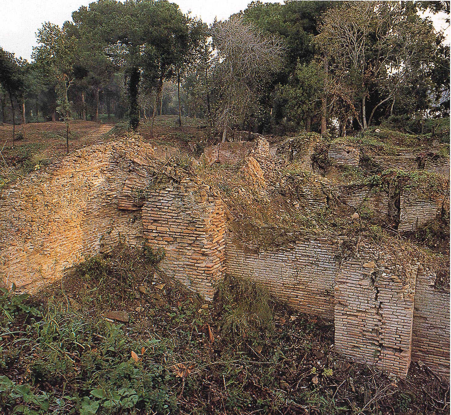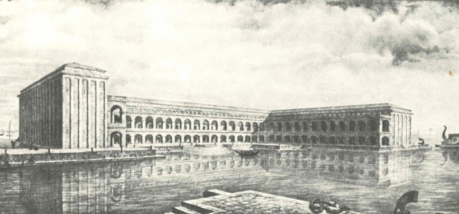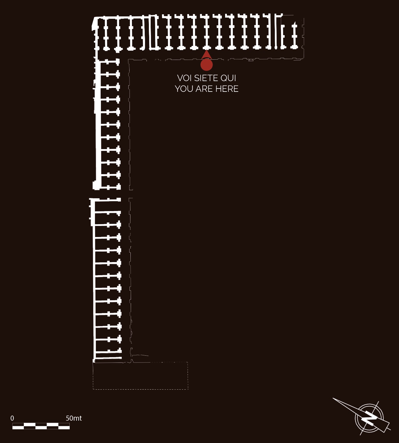 Il complesso presenta probabilmente una pianta a C, con i due bracci corti orientati in senso nord-sud e il braccio lungo in senso est-ovest. Il braccio corto orientale è parallelo e adiacente al bacino di Traiano, il secondo lato corto non è più visibile. Il complesso si articolava su tre piani. Sul braccio lungo al piano terra, su un corridoio largo 4,50 metri coperto da volte a crociera, si aprono ambienti a pianta quadrangolare, modulari, coperti da volte a crociera in muratura, con ingressi caratterizzati da stipiti e archi in laterizi. Sul lato breve gli ambienti affacciati sul corridoio sono lunghi e stretti, alternati a rampe per salire al piano superiore. I Magazzini Severiani sono in stretta connessione con il complesso del Palazzo Imperiale, collegato a essi attraverso un passaggio voltato.