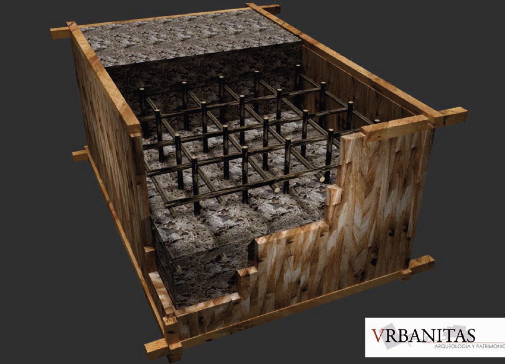 Ricostruzione del sistema di casseforme lignee usato per la costruzione del molo