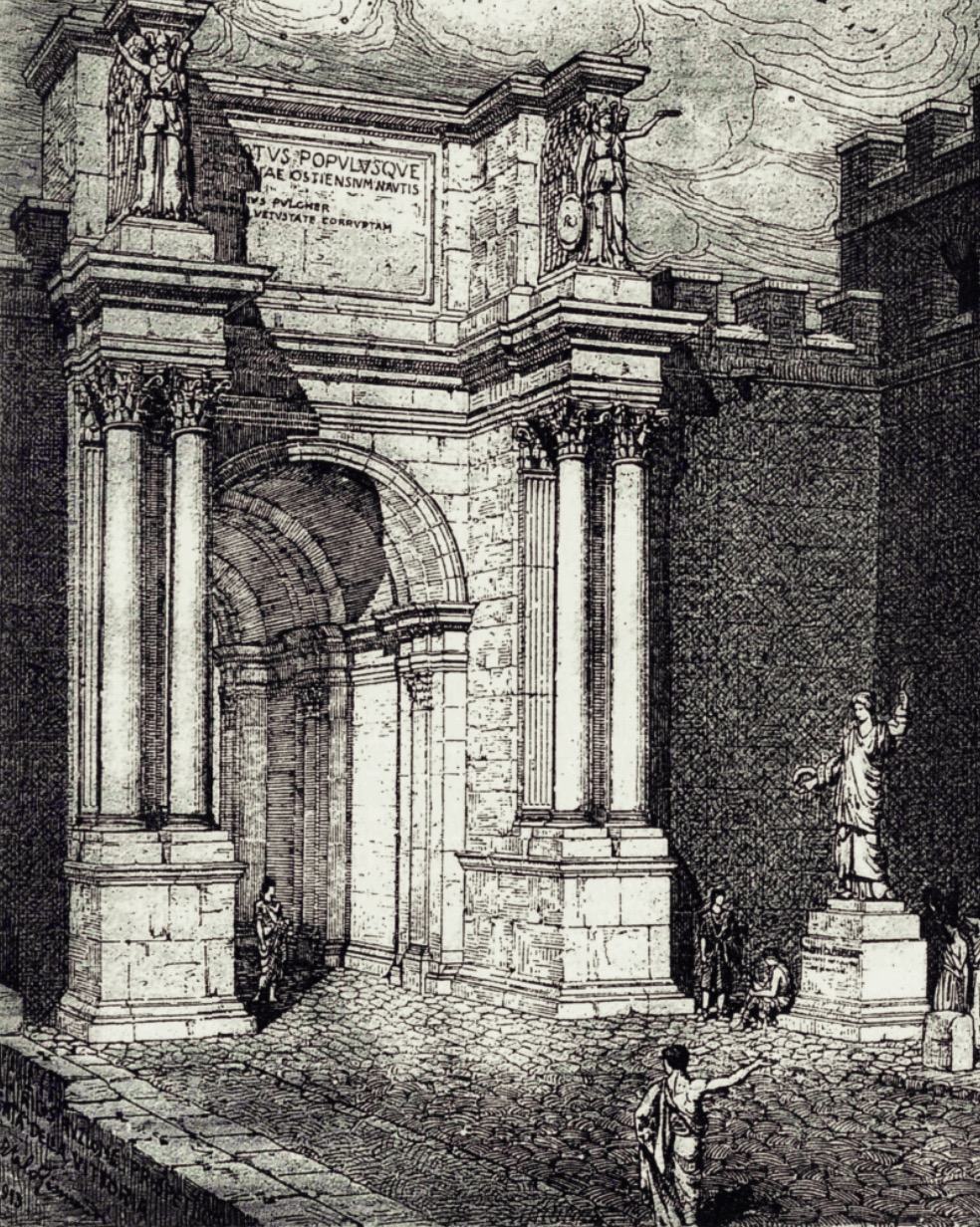 P. Clodio Pulcro, tribuno della plebe, la completò e la collaudò. La porta, deteriorata dal tempo..."