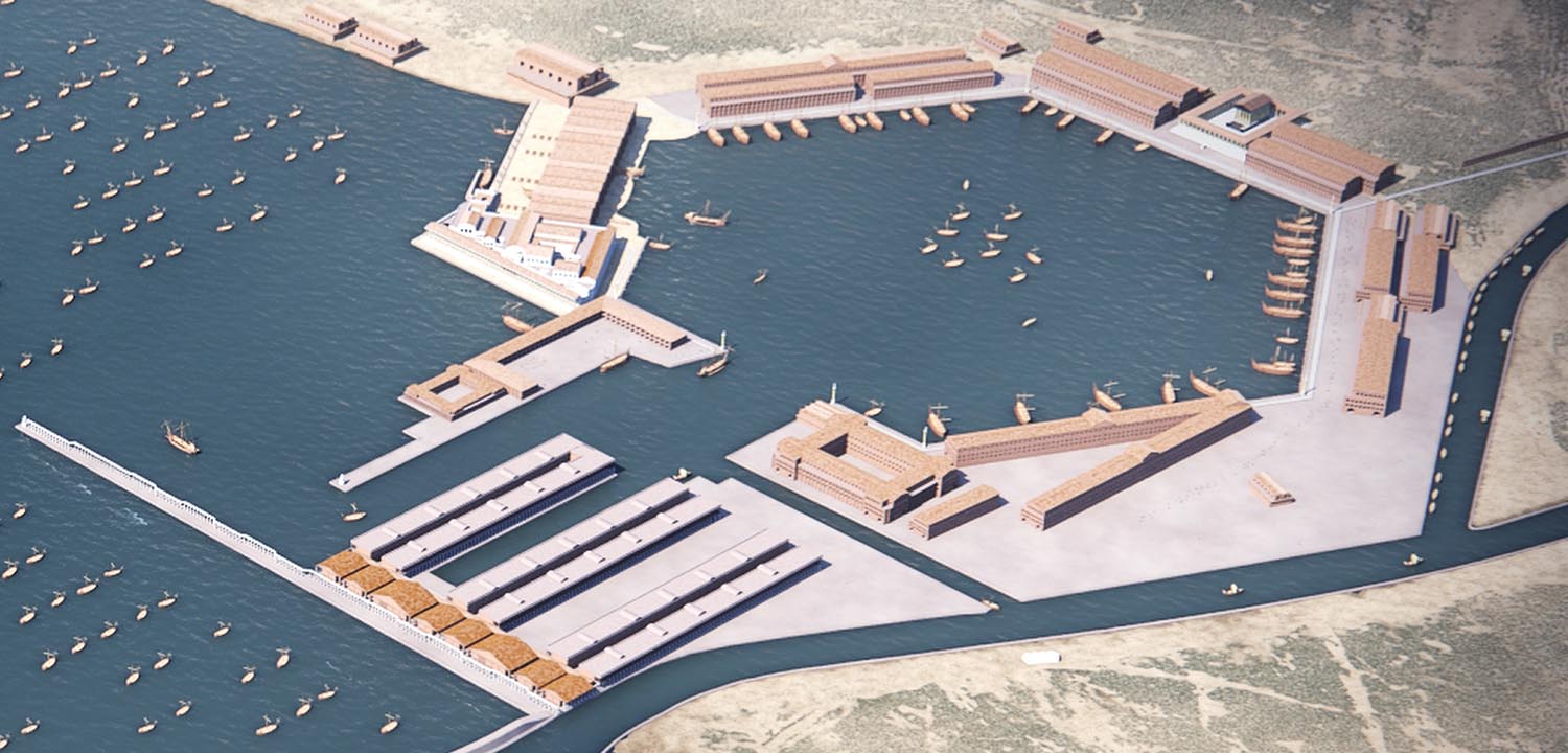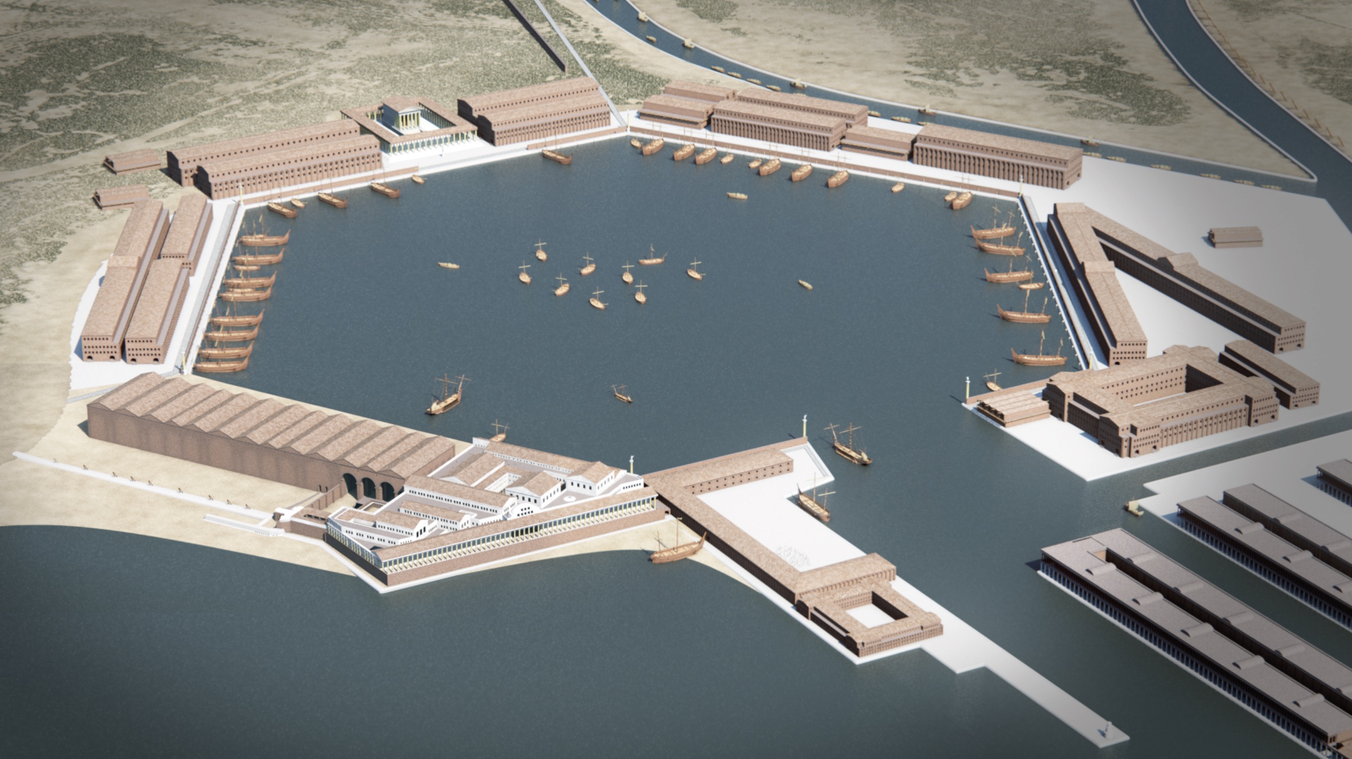Ricostruzione del canale di imbocco del porto di Traiano, collegamento tra il bacino esagonale e il Porto di Claudio