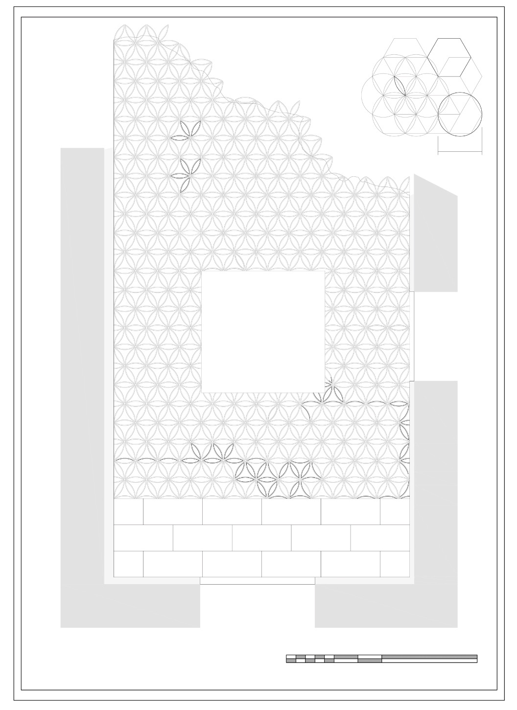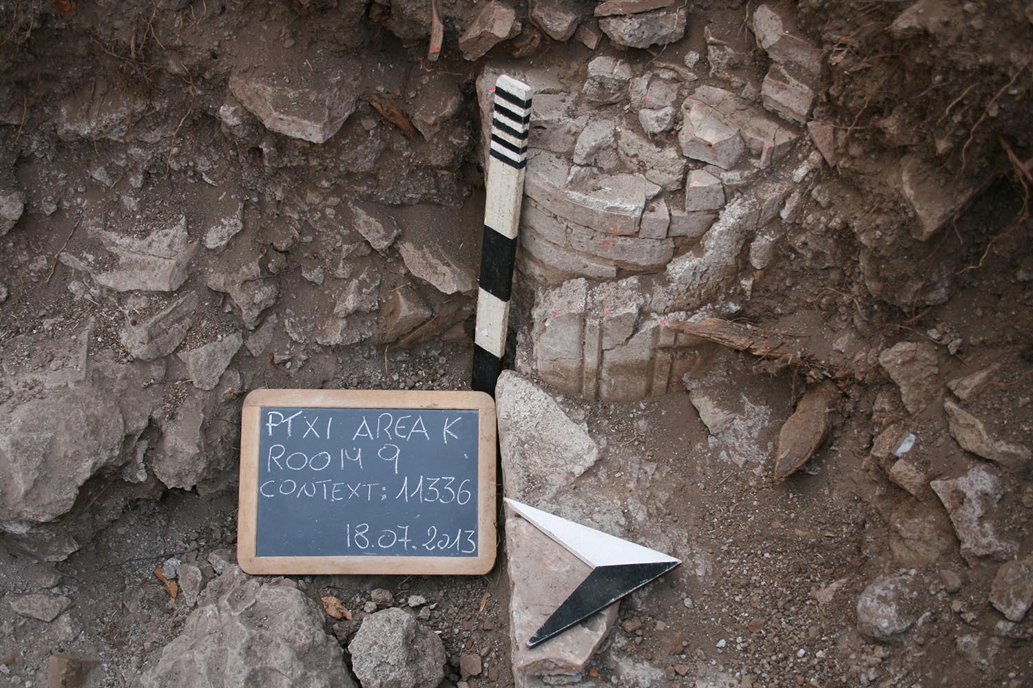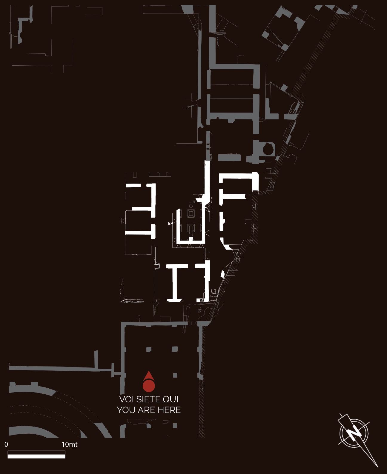 Veduta aerea degli ambienti con i livelli preparatori del pavimento in opus sectile