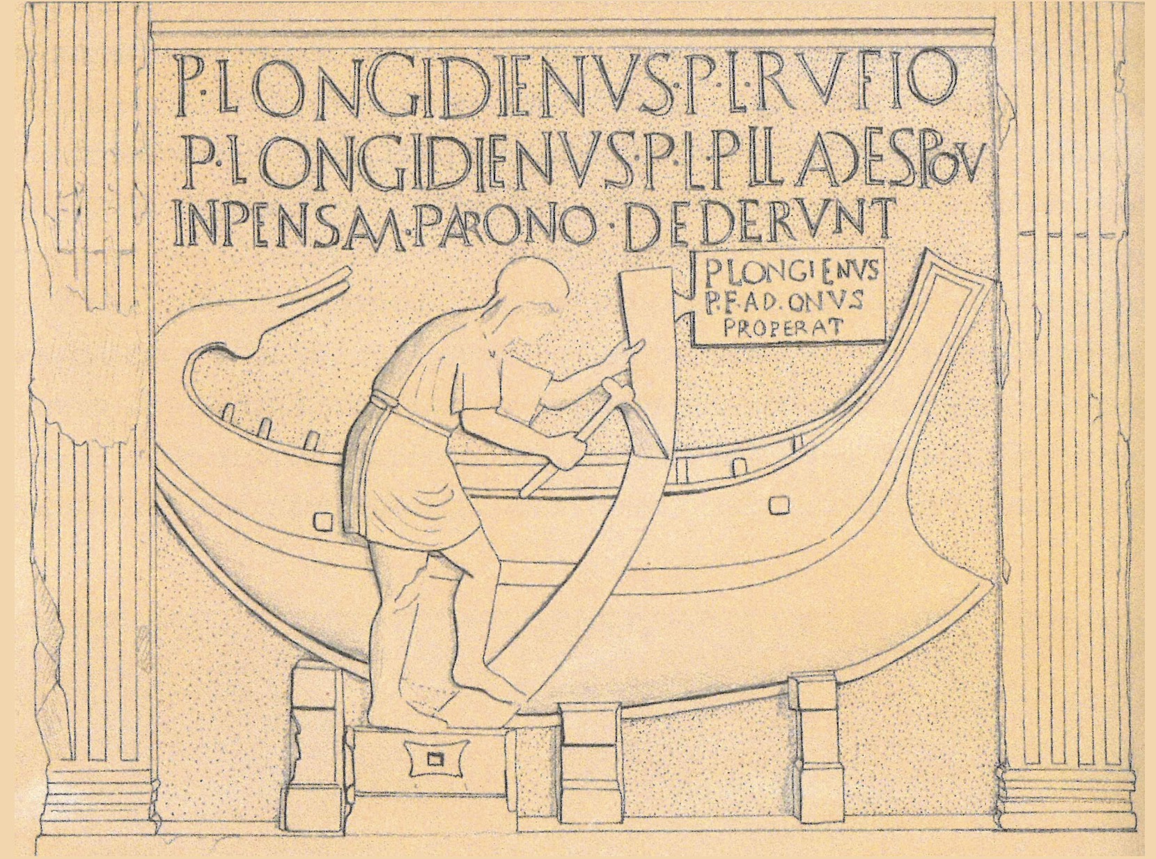 Disegno della stele del maestro d’ascia Publio Longidieno, conservata presso il Museo Nazionale di Ravenna
