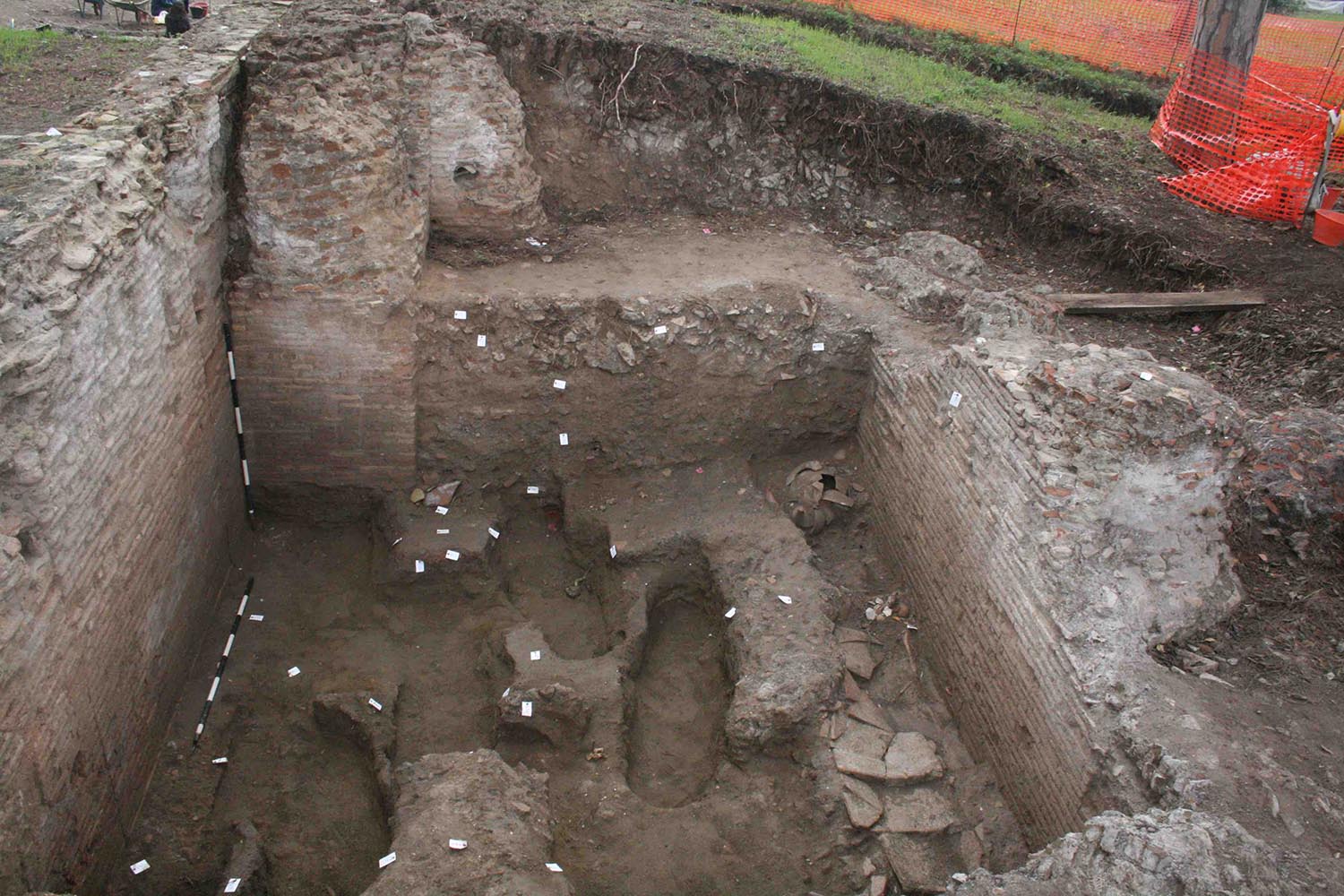 Tratto del corridoio a fianco della grande navata riutilizzato in età tardoantica come sepolcreto